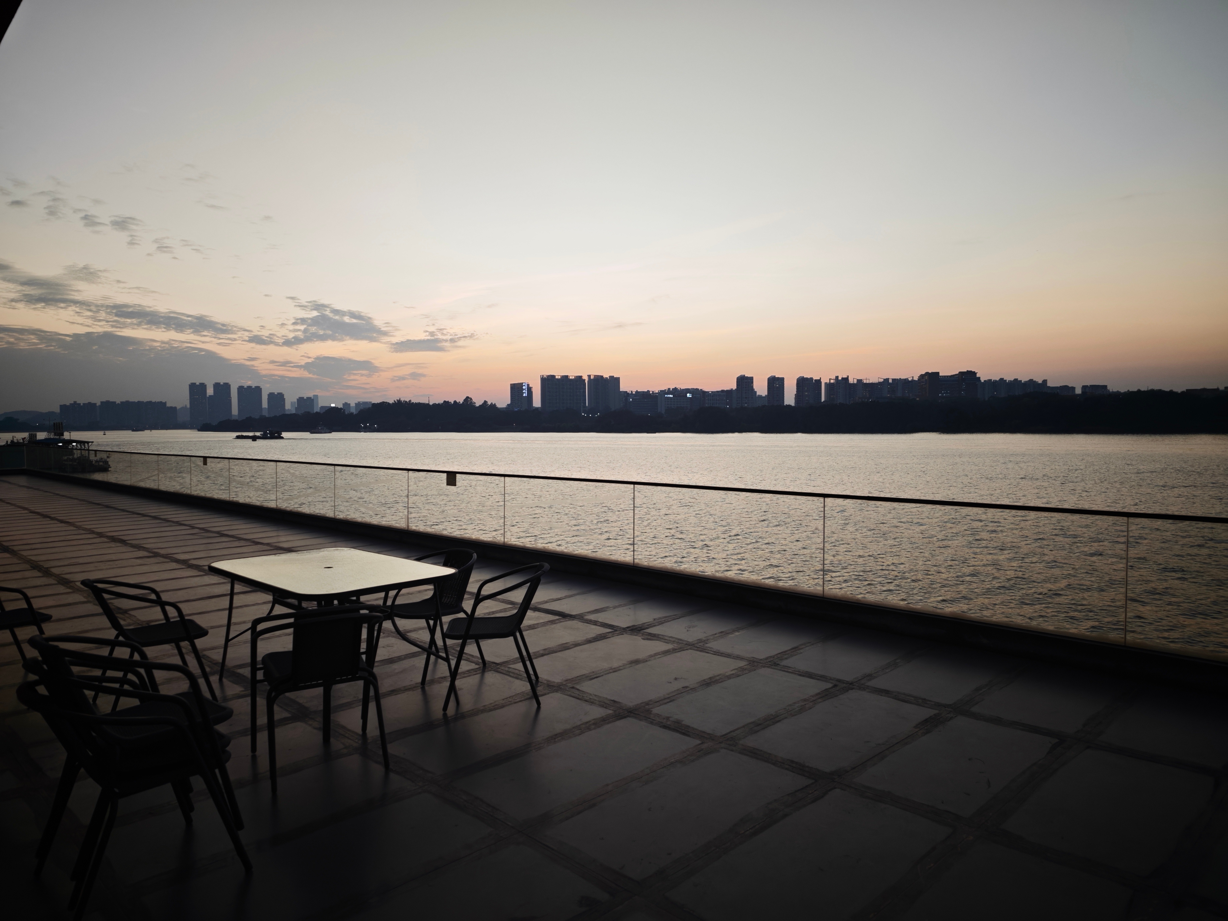 公司江景大露台,是个会客的好地方。前两天有个好朋友过来聊天,正好他想抽烟,我就陪他在这坐着聊,看着日落,吹着江风,聊到太阳下山。