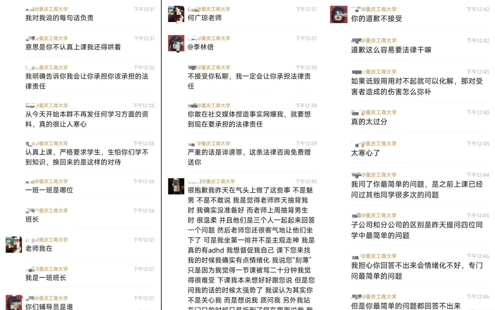 结果会是如何呢?造谣老师刻薄媚男女生发声重庆工商大学涉事学生道歉