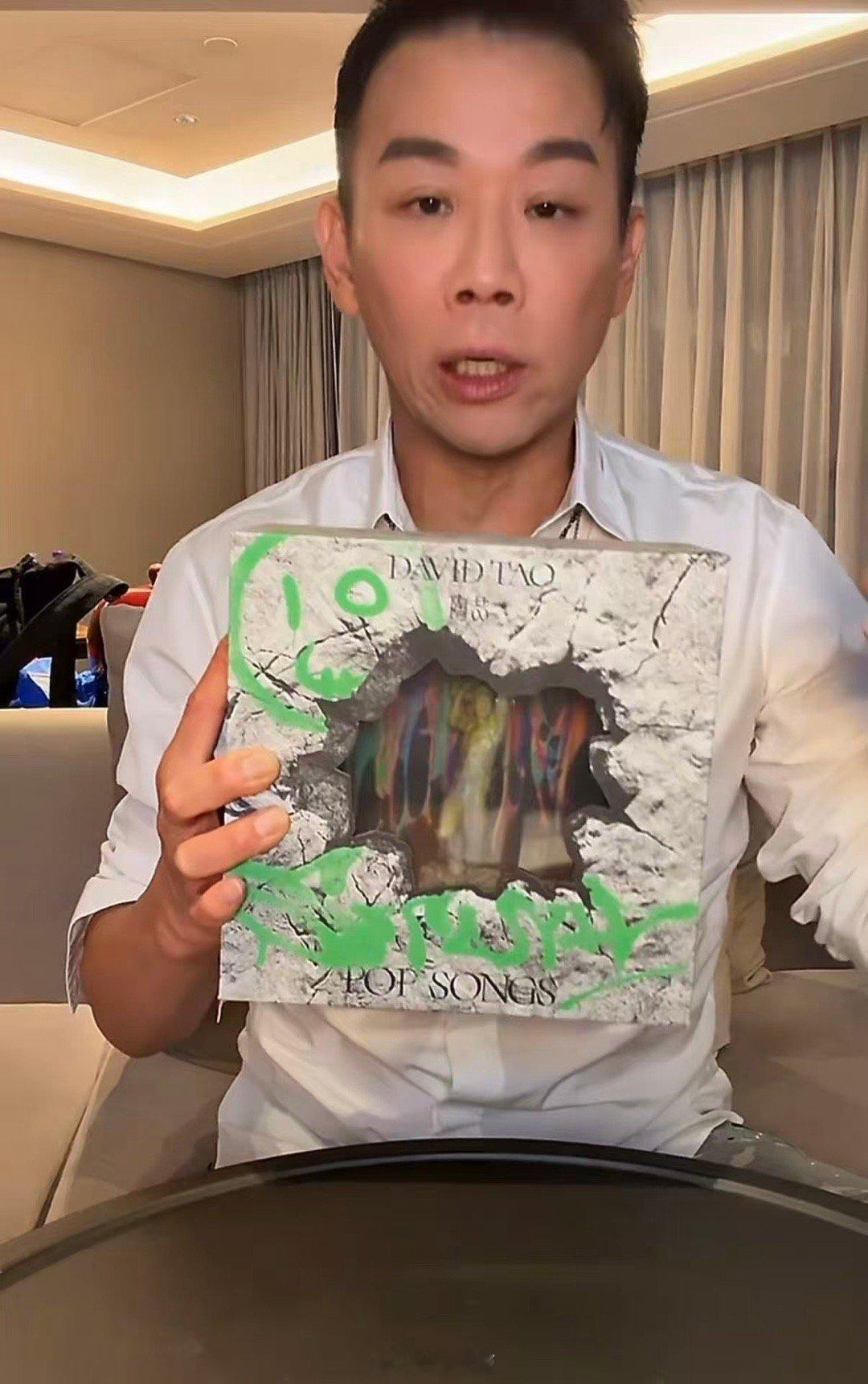 陶喆用锤子剔牙在新专辑宣传直播中,陶喆拿起自己亲手喷漆的小公仔,指着上面的锤子说