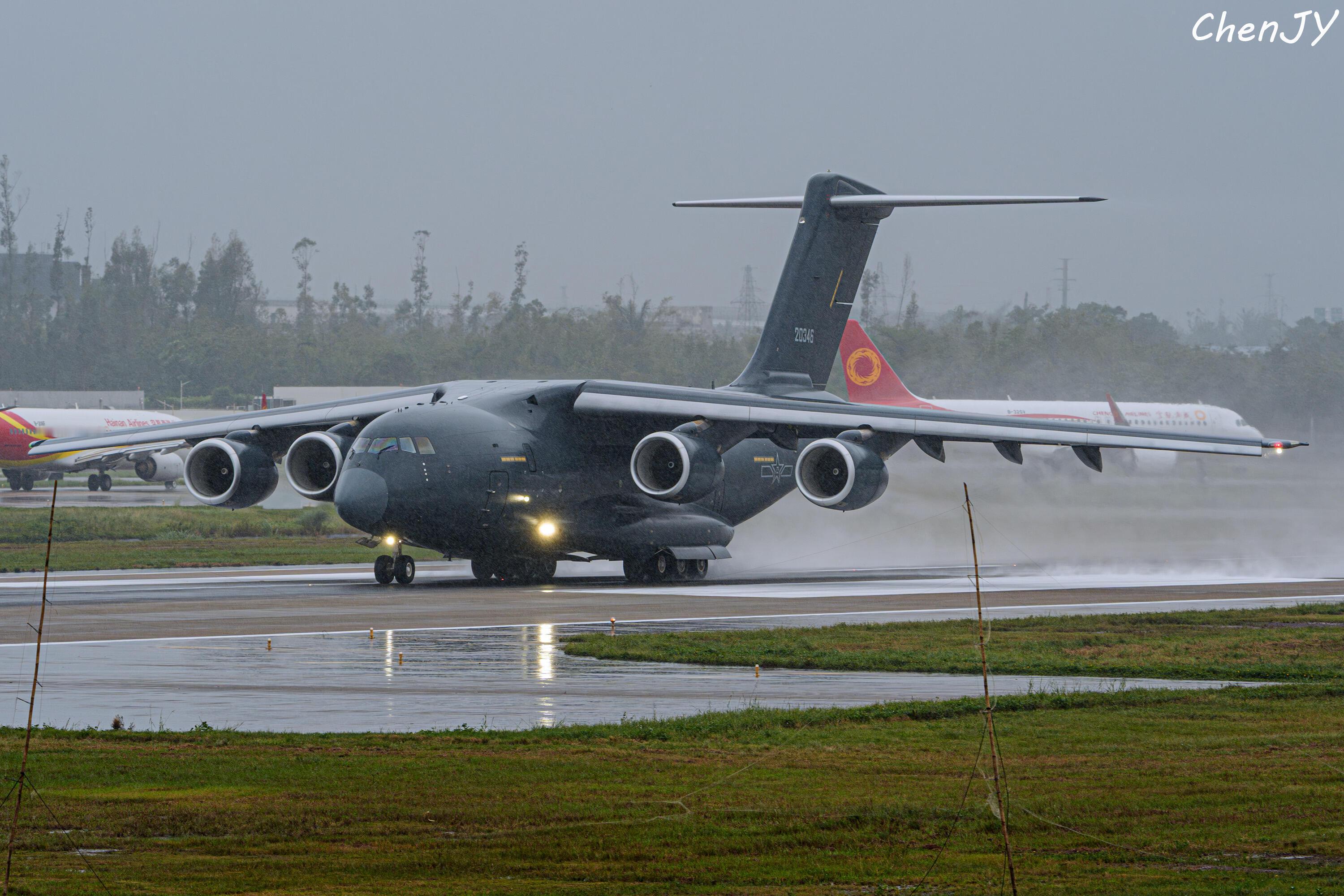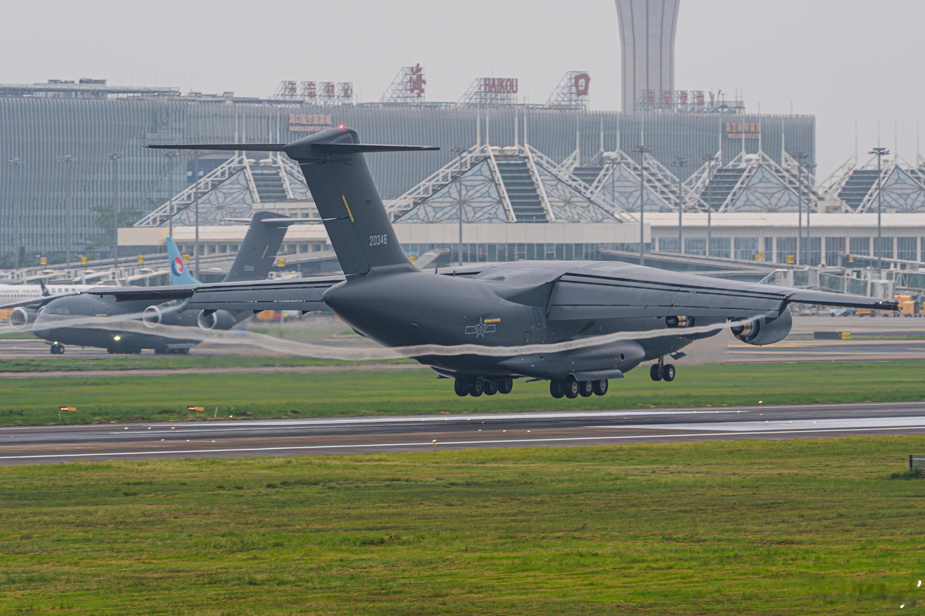 有趣的场景。韩国釜山金海国际机场紧邻的一处空军基地的主楼,两辆世界上最受瞩目的专