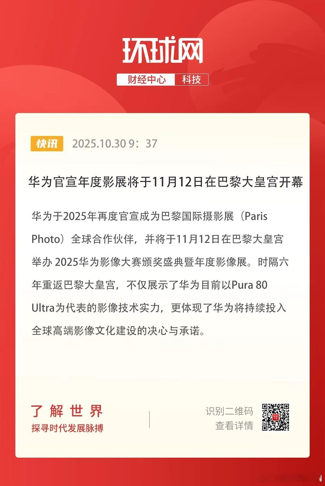 各位华为Pura80 系列的用户,注意啊,华为年度影展要在巴黎大皇宫开幕了!