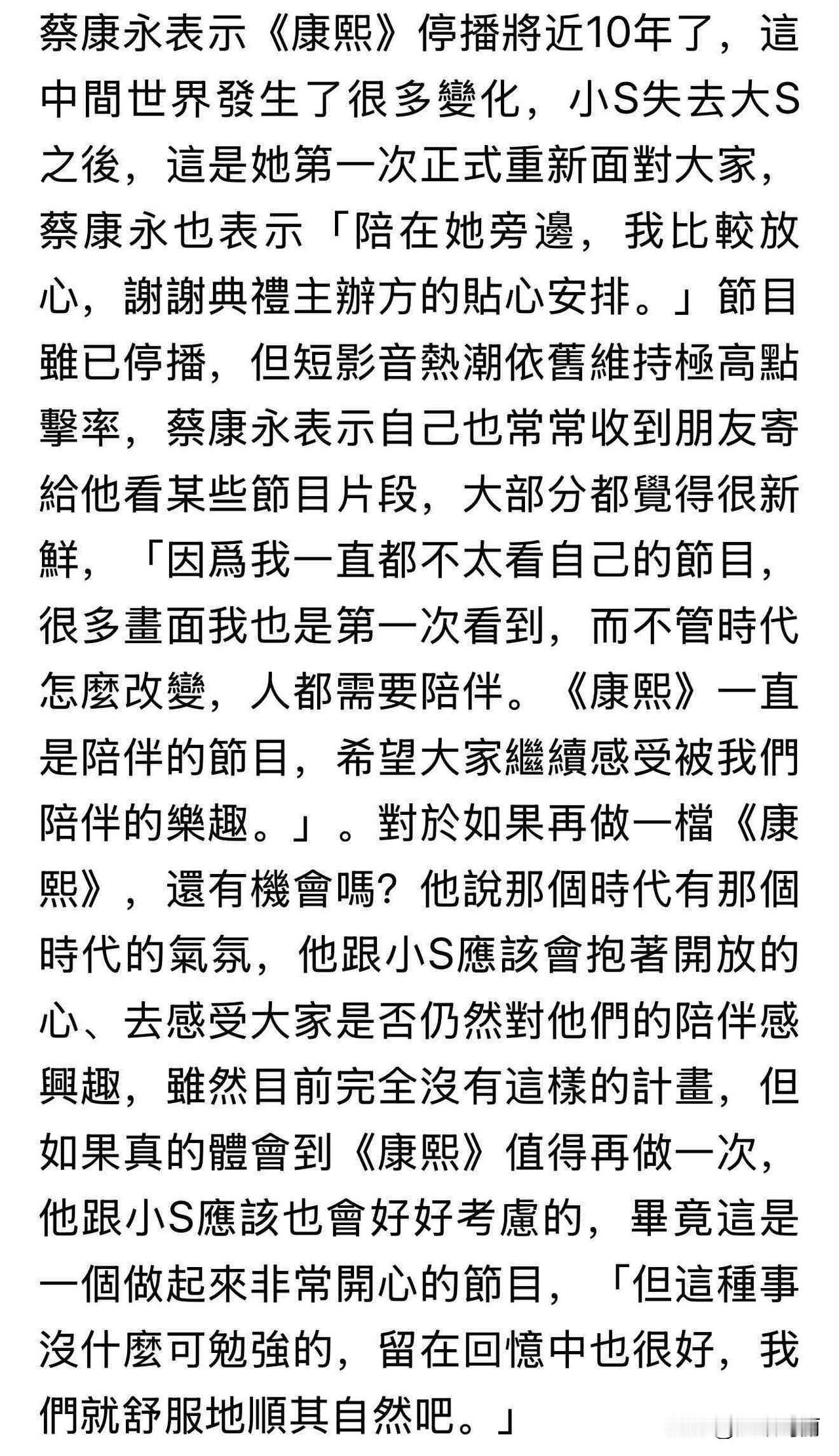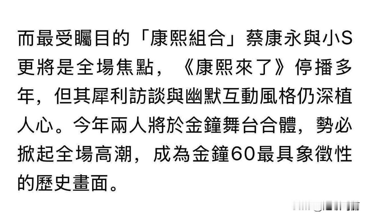 小S 蔡康永确定再合体,谁的青春回来了