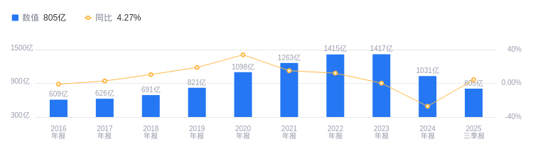2025年三季度,新希望营业收入达805.04亿元,行业排名2/12,高于行业平均数256.54亿元和中位数55.15亿元,行业第一名牧原股份营收为1117.9亿元。主营业务构成中,饲料354.79亿元占比68.72%,猪产业143.69亿元占比27.83%,其他17.76亿元占比3.44%。当期净利润为9.81亿元,行业排名3/12,行业第一名牧原股份净利润151.12亿元,第二名温氏股份54.17亿元,行业平均数为18.79亿元,中位数为1.86亿元。