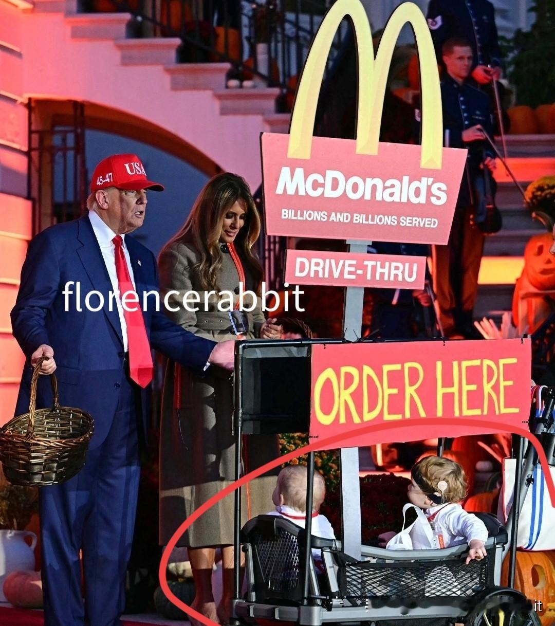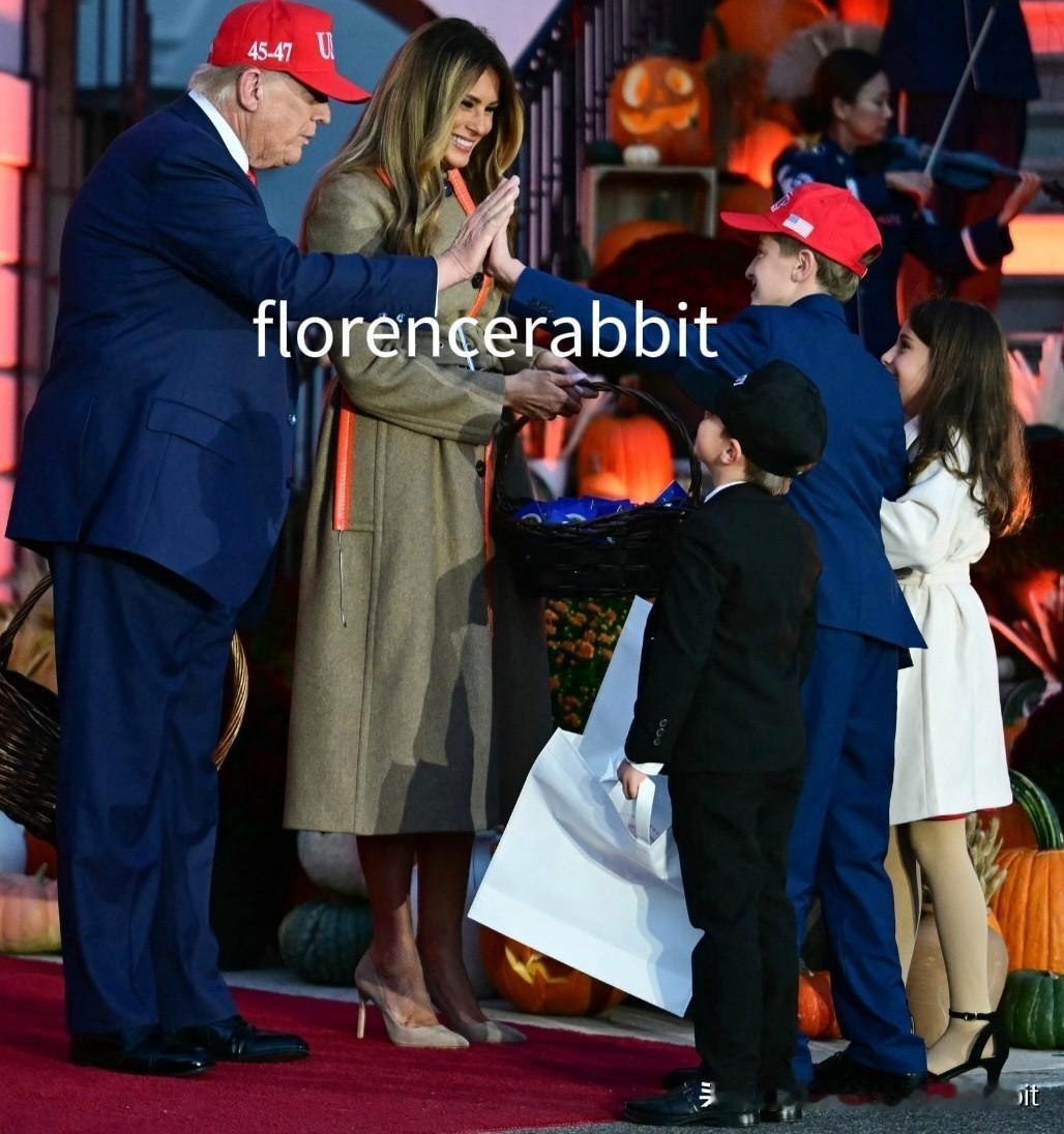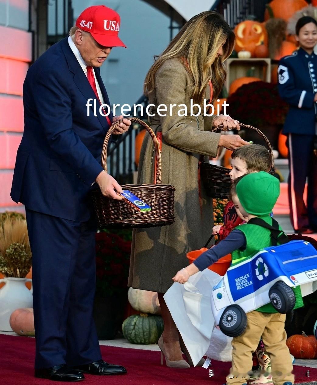 刚结束亚洲多国访问返回美国,79岁的老特戴着红帽子,打上红领带,和第一夫人在白宫分发巨型巧克力棒的时候看起来兴致很高。发言人莱维特也带着孩子和老公过来“讨糖”——白宫传统的万圣节活动中,孩子们的节日服装好可爱~ 万圣节 美国万圣节