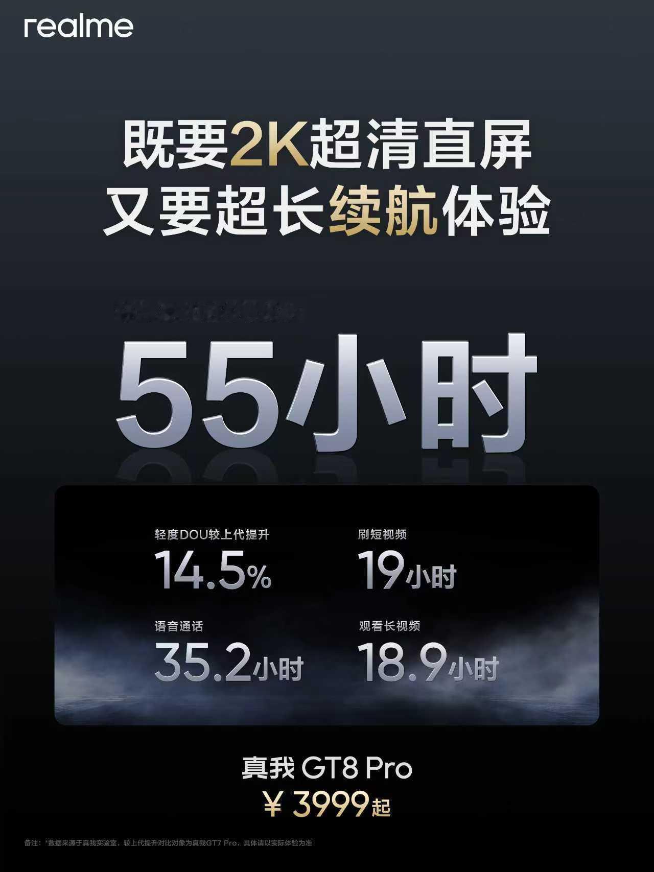 真我GT8Pro轻度使用DOU长达55小时,即便不间断刷短视频也能用满19小时