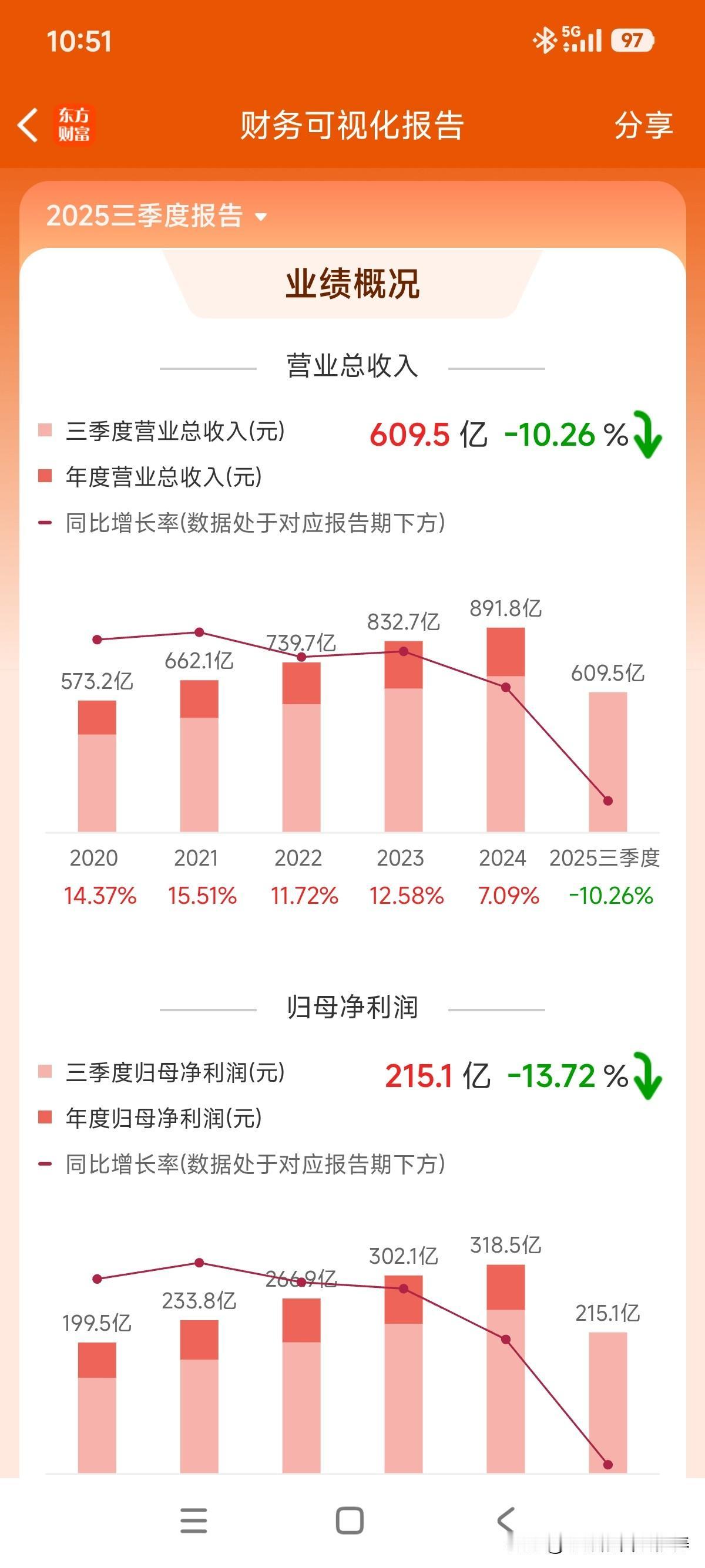 昨天看了下业绩,手上不多的五粮液仓位都计提3到5个点损失了,没想到还拉红了[捂脸]! 猜到三季报业绩会下滑,没想到下滑那么严重,知道管理层不要脸,不知道这么不要脸[呲牙],左边业绩给了一耳光,右边给了颗分红的棒棒糖!账面1300多亿现金存关联公司,分红扣扣搜搜,回购注销只刮风不下雨! 当然吐槽归吐槽,200元以上的五粮液感觉是歪瓜裂枣,120元以下的五粮液看着也是眉清目秀的,只是手上轻仓持有不急着冲!