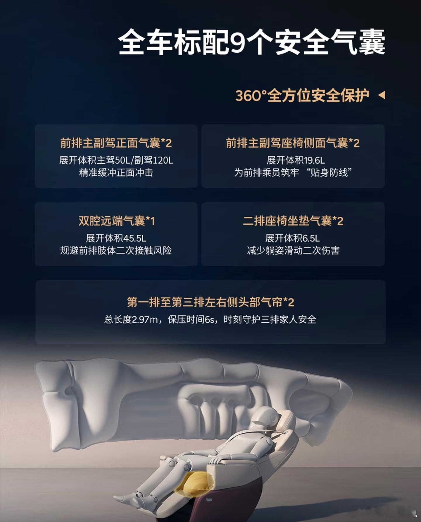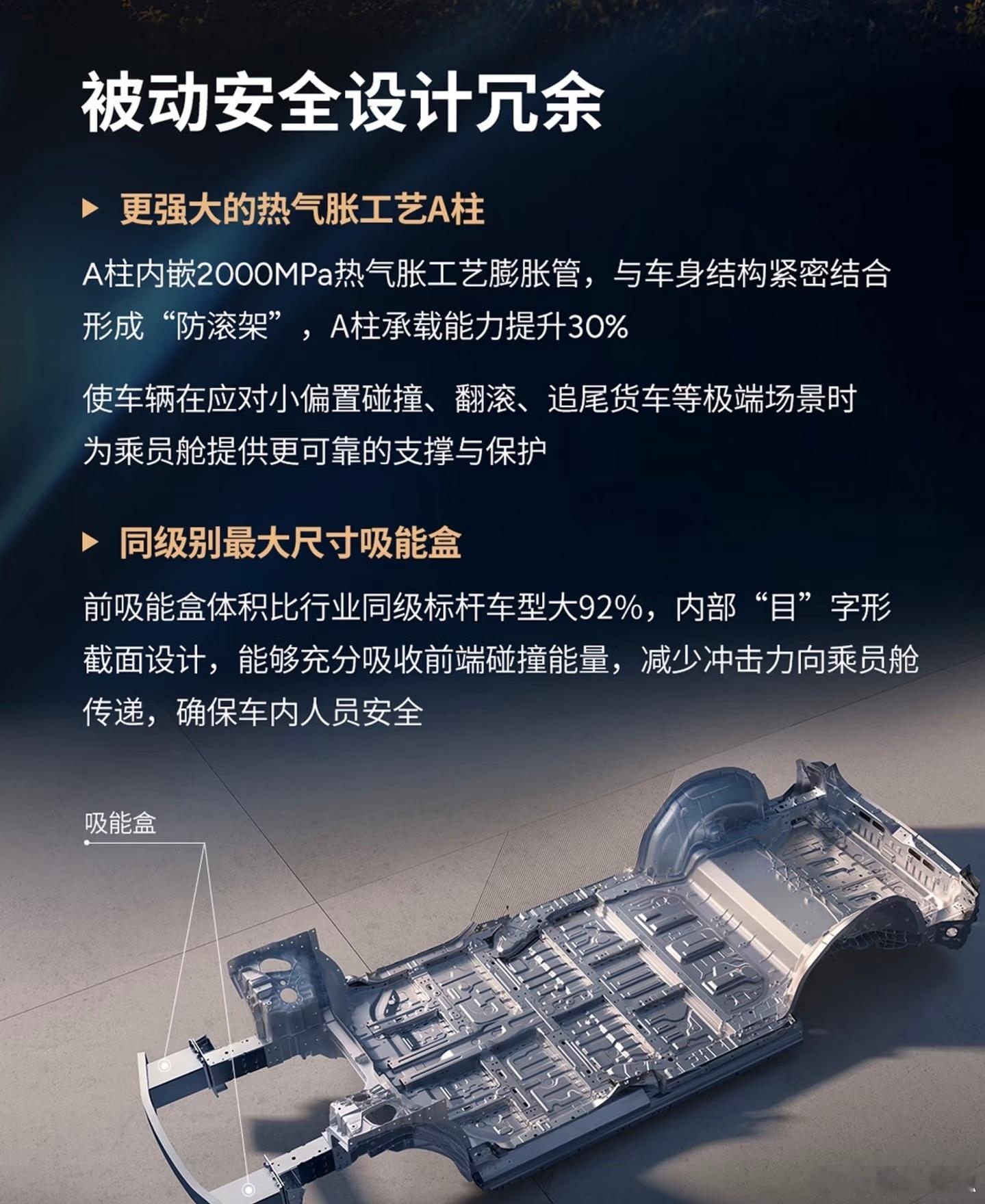 👉安全:满足欧洲E-NCAP五星安全设计标准等三大设计标准、金刚铁骨车身标配9个安全气囊、更安全的液冷恒温无热蔓延磷酸铁锂电池包、侧碰抗压达到80吨。