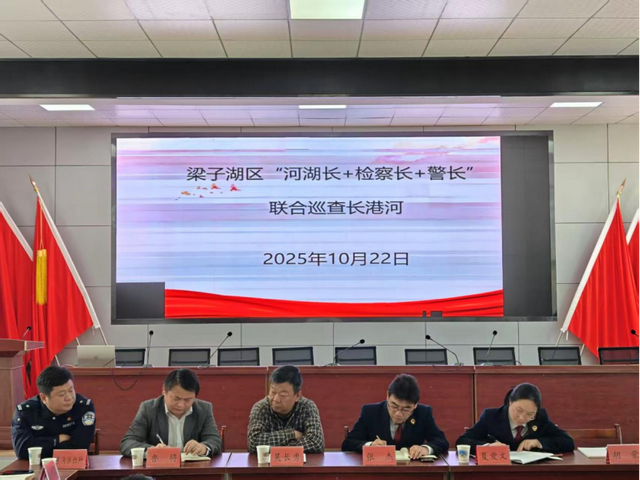 为深入践行生态文明思想,扎实推进助力长江大保护专项行动,2025年10月22日,梁子湖区人民检察院携手市、区水利和湖泊局、区公安分局及相关属地单位,共同开展“河湖长+检察长+警长”联合巡湖,对长港河沿线进行实地巡查,并召开专题座谈会。