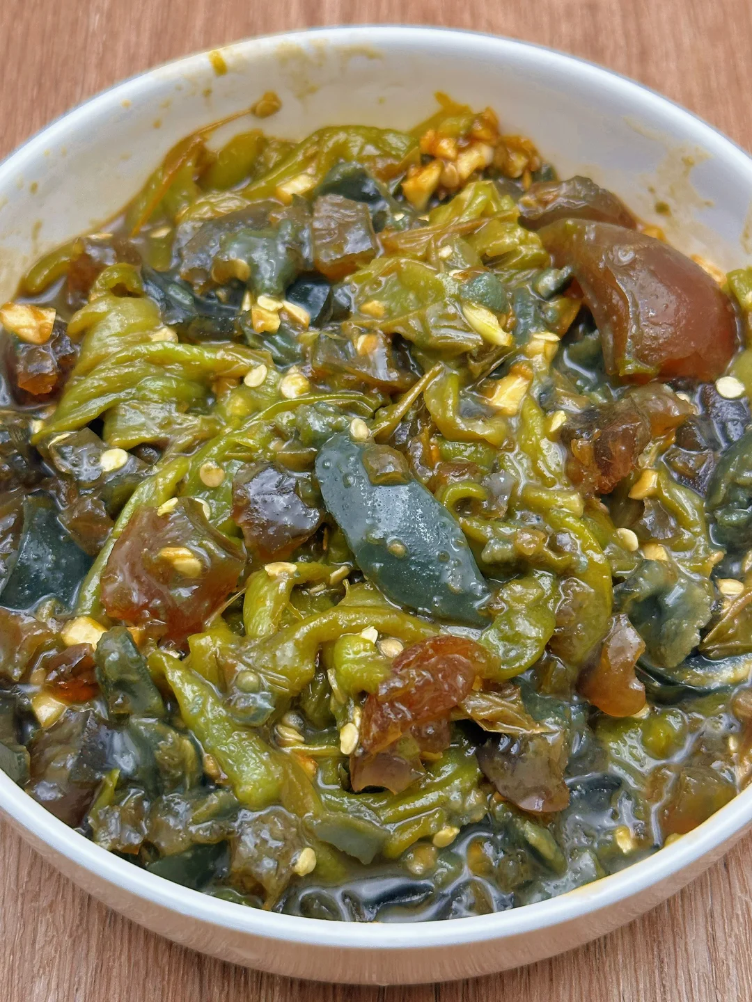 🥗食材:青椒、皮蛋、蒜末