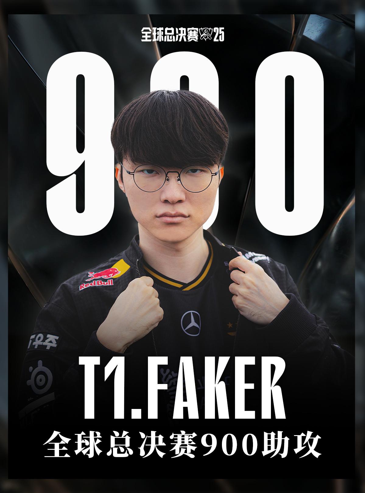 里程碑:Faker达成全球总决赛900助攻成就,历史第一