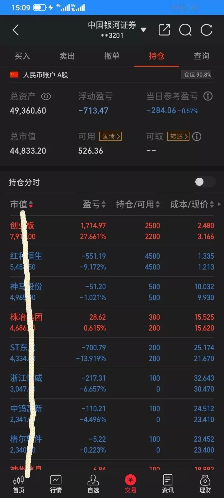 2025.10.31,这个月的最后一天,毫无悬念的亏损了。防不胜防,持有的东尼又踩雷了,今天st了,开盘就直接几十万手卖单封住了跌停,全天完全没有人买,才成交402手,又不知道要多少个跌停才能开板了,公司造假,我们又躺着中枪了,连带处罚了,今天这种股票亏了200多块钱,昨天收盘没有买到的中钨,今天反而下跌,今天买到不是赚到了吗,比昨天买入便宜很多呀,26.01开盘,集合竞价委托24.51买入100股,能够买到就买,买不到就算了,但是没有想到,还是在不断下跌中买到了,买到后反弹上涨,还以为又买对了,谁知道还是买在半山腰,反弹一点点,然后逐步下跌,最终还是跌停了,亏了一百多块钱。又买错了。 今天株冶高开高走,然后逐步回落,想做个t,于是委托以15.78买入100股,又判断错了,成交之后逐步下跌,最低跌到15.50元,收盘收在15.61元,亏了,就当补仓吧,做t失败。 指数以1.217卖掉2000股红利,想做个t,但是卖掉之后反弹上涨了,又卖错了,但是反弹了一点点,最终还是下跌,跌幅不大,差价几块钱,做t的意义也不大,就没有买回来了。 今天下跌中创业板触发了止损单,以3.209止损卖掉200股,卖掉之后反弹上涨,卖错了,但是反弹一点点,还是继续下跌,下午看到有企稳反弹的迹象,怕错过了上涨,于是以3.184买回来200股,还是买错了,继续下跌,收盘以3.169再补仓100股。 早上看到恒威上涨,想做个t,于是以30.55买入100股,一直没有成交,后来好不容易成交,但是成交了就逐步下跌了,收盘以30.47卖掉100股,做t失败,加上印花税佣金亏了10块钱。 今天新建仓4只股票,早上以17.90新建仓买入100股飞天,成交之后上涨了一点点,然后逐步下跌,收盘收在最低价,亏了20块钱。早上以24.51买入100股中钨,跌停了,亏了110多块钱。收盘前以23.45新建仓买入100股格尔,收盘亏了5块钱。收盘前以18.88买入100股神州,收盘拉了尾盘,浮盈7块钱。 收盘以12.95清仓止损了100股国泰,亏了60多块钱。买入股票就是为了上涨赚钱,既然不上涨,就是买错了,就及时止损吧。 昨天止损的环旭,国机还是止损对了,不然还要多亏100多块钱,但是联翔止损错了,今天反而上涨了,又错过了。 昨天买入的方大今天又坐了过山车,最高上涨了9个多点,想等涨停卖掉100股,但是差5分钱没有涨停,没有涨停就逐步下跌了,看来拉高是诱多,到收盘才上涨2个点,又错过了。今天仁智高开高走,早上10点多就封住涨停了,按照计划,以涨停价10.33卖掉100股,看到几十万手封单,以为今天稳了,赚了一百多块钱,但是还没有来得及高兴10分钟,主力可能就是诱多,拉高出货的,封单逐步撤单了,一下子开板了,而且大幅下跌,一下子砸到8.84元,还好设置了一个条件单,下跌中条件单触发了,以9.60又卖掉100股,一下子一百多块钱又没有了,从8.84触底反弹,前几天上海电力也是快速下跌,然后反弹上涨,第二天还涨停,以为这次也是洗盘,从8.84又大幅反弹,不能错过了,感觉跌不下去了,于是以9.10又买回来100股,但是这次不一样,不是洗盘,是真的下跌,在9块多反复震荡了一段时间,还是继续下跌,最低跌到8.49元,差4分钱跌停了,差一点天地板了,收盘反弹了一点点,收在8.61元,又多亏了50块钱。 今天做得比较多,错得也比较多。新建仓4只股票,亏了120多块钱,t了200股创业板,赚5块钱,t了100股恒威,亏了10块钱。加仓100股株冶,止损减仓2000股红利,清仓止损了国泰,亏了60多块钱。 今天总市值4.48万元,总资产4.93万元,今天总体账户亏损284元。这个月亏了843元,今年还亏2000多块钱,愿赌服输。坦然面对吧。亏钱是赚钱的一部分。亏损通报 东尼佳 东尼新能源 圣得兰东尼 东尼说球