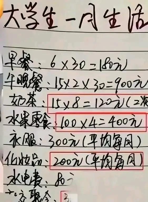 大学女生网上哭诉,父母每月只给1500元生活费,根本不够用!她晒出的生活费清单,