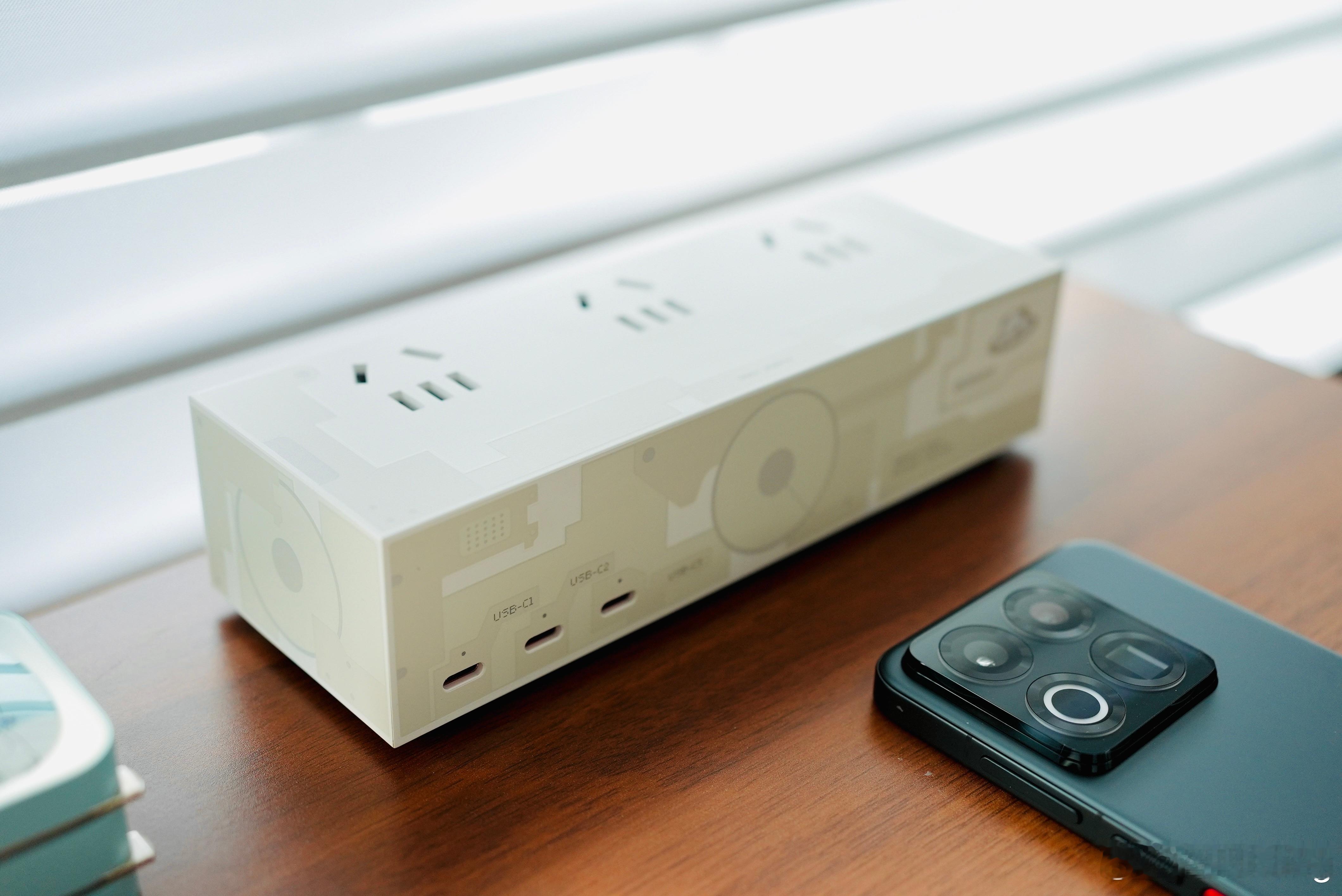 PANDAER 120W桌面充电站适合电子设备多的办公党或家庭用户,堪称“桌面整理大师”。它自带3个Type-C口和3个五孔插座,6个接口能同时给笔记本、手机、台灯等设备供电,总功率120W,单口最高100W,连MacBook都能满血快充。设计上有影视飓风「无限进步」logo的联名涂装,还拿过红点奖,底部防滑垫能稳稳固定在桌面。
