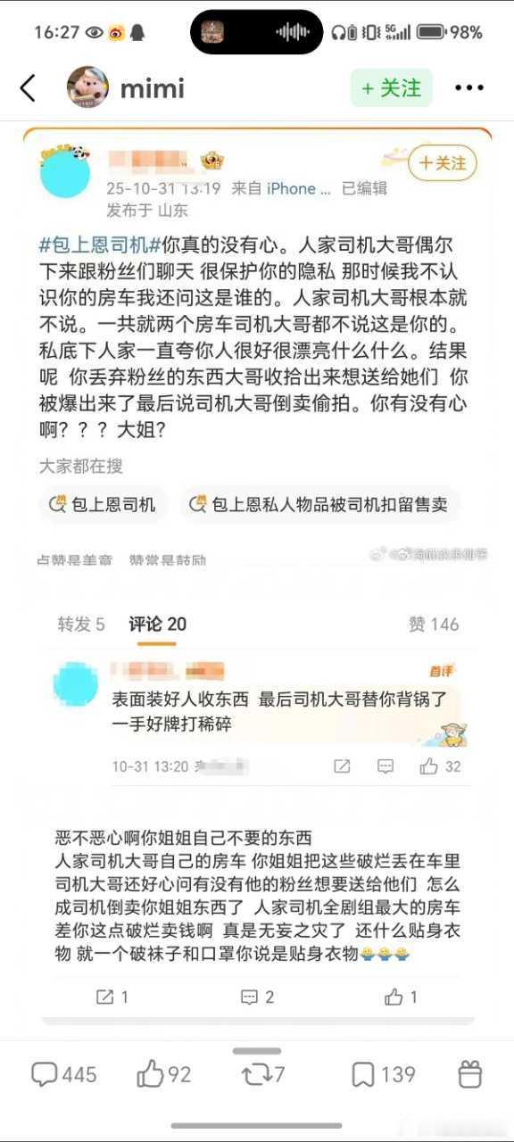 包上恩工作室对房车司机的态度确实有失公允,难怪粉丝会脱粉