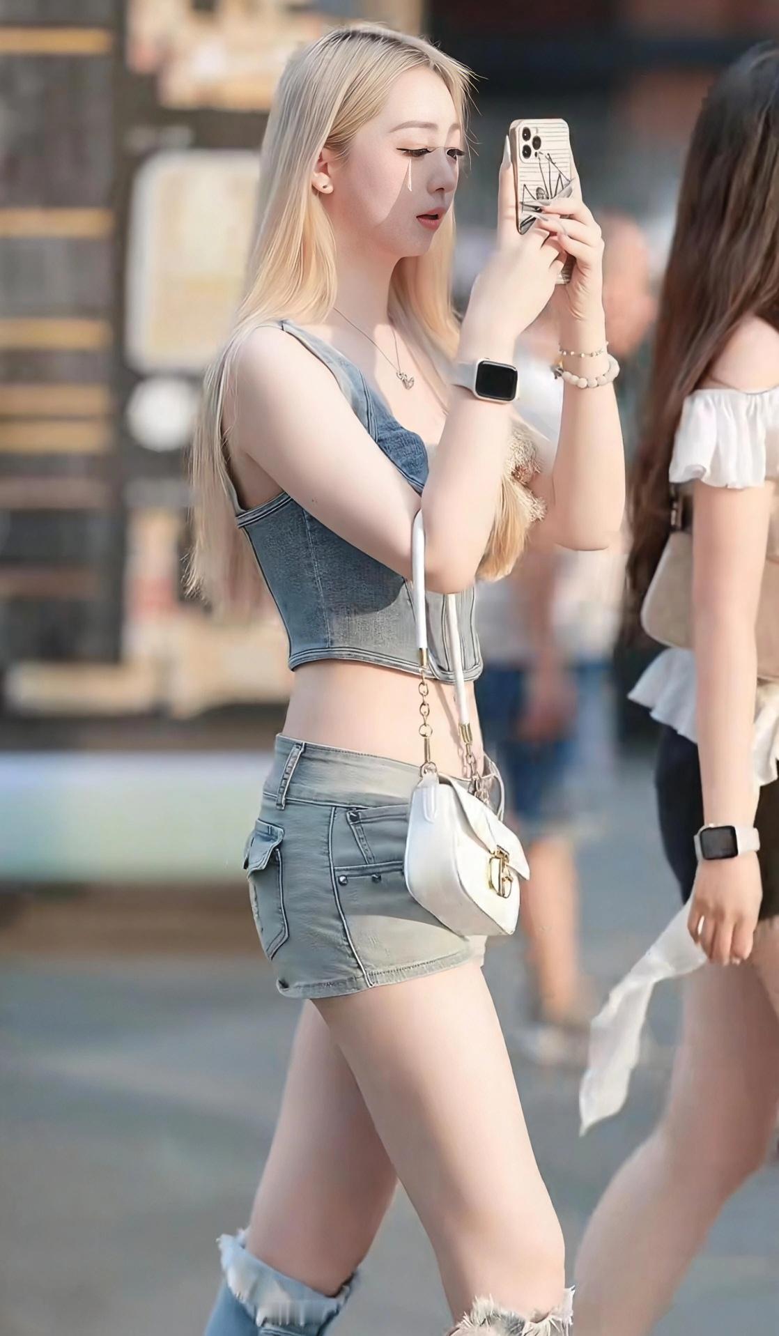 元气少女穿搭指南:白色吊带+牛仔裤,轻松出街!街拍美少女穿搭吊带牛仔裙穿搭