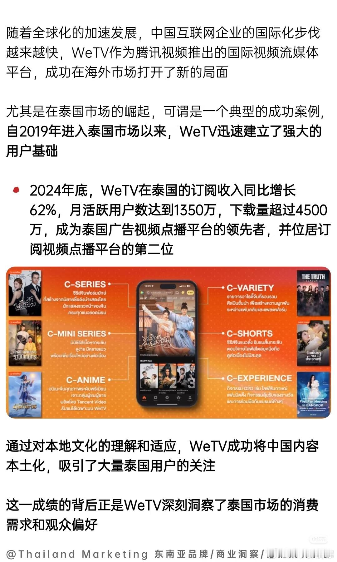 随着全球化的加速发展,中国互联网企业的国际化步伐越来越快,WeTV作为腾讯视频推出的国际视频流媒体平台,成功在海外市场打开了新的局面,尤其是在泰国市场的崛起可谓是一个典型的成功案例!内容创新:打造全方位娱乐体验