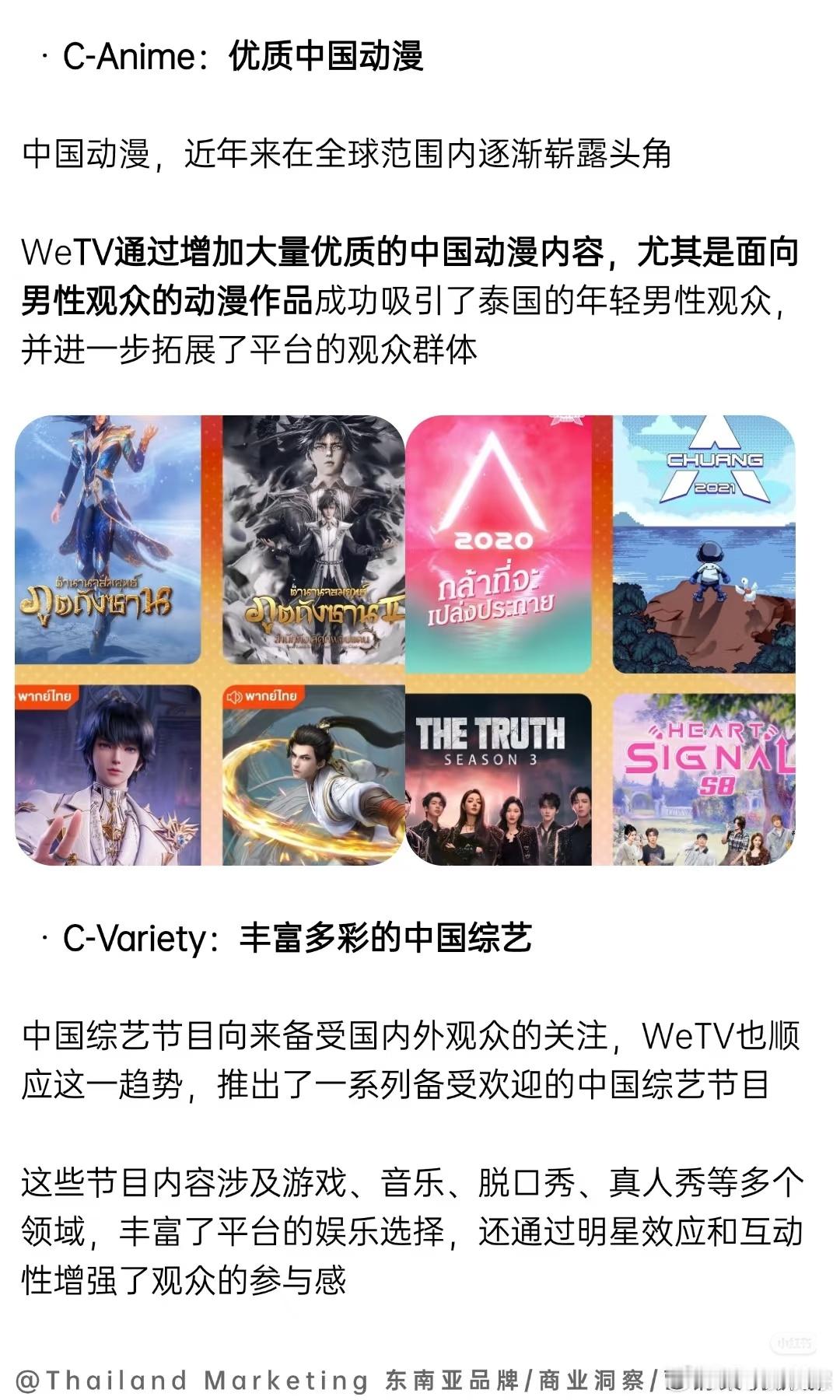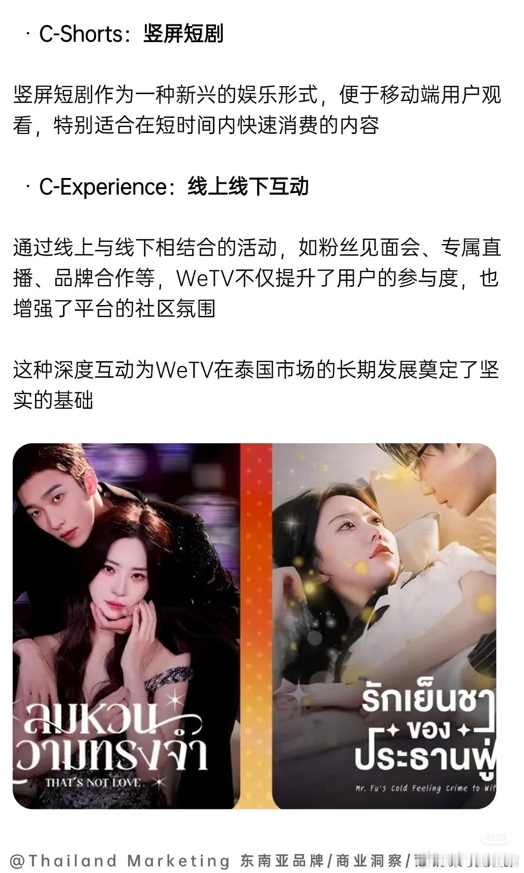 平台通过六大核心内容类型,包括C-Series(长剧)、C-Mini Series(迷你剧)、C-Anime(中国动漫)、C-Variety(综艺节目)、C-Shorts(竖屏短剧)以及C-Experience(沉浸式体验),有效满足了泰国不同观众群体的多样化需求,将观众绑定到WeTV平台