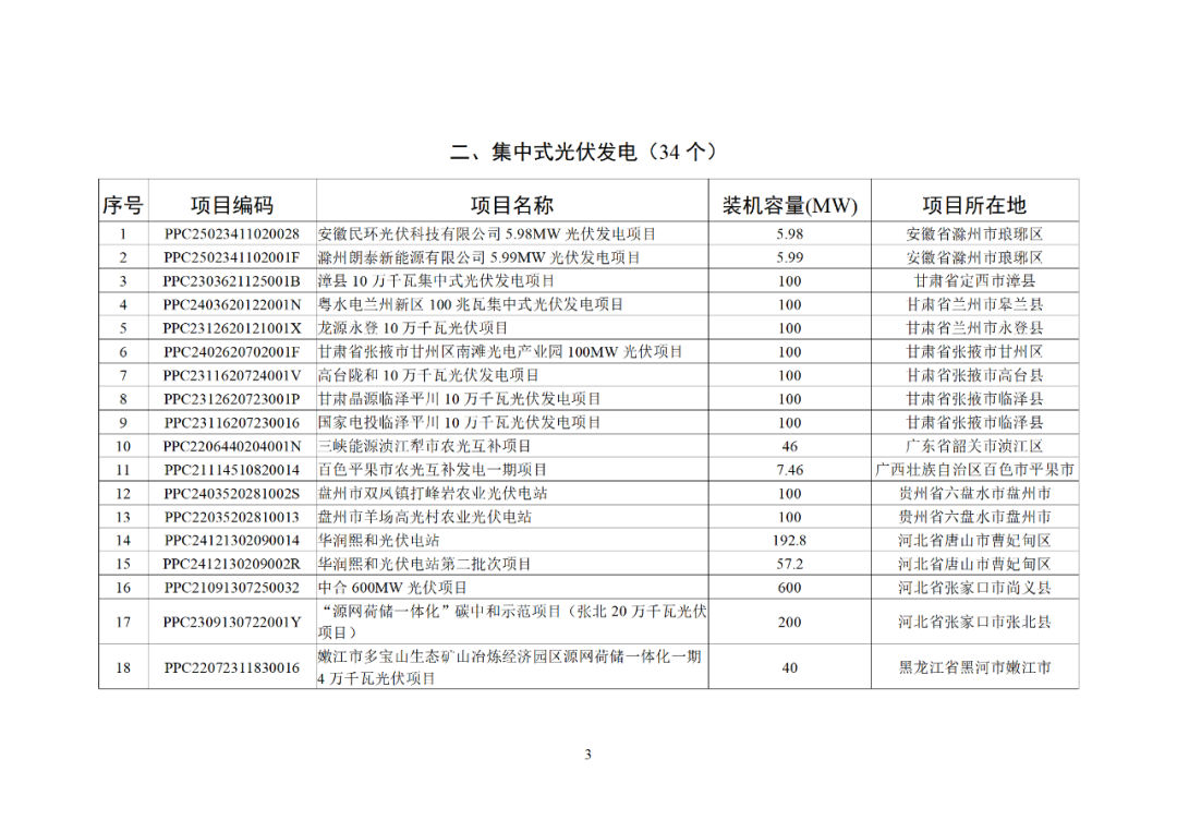2025年9月,全国新增建档立卡新能源发电(不含户用光伏)项目共7218个,其中风电项目32个,光伏发电项目7184个(集中式光伏发电项目34个,工商业分布式光伏发电项目7150个),生物质发电项目2个。风电、集中式光伏发电、生物质发电项目清单见附件,工商业分布式光伏发电项目清单详见国家可再生能源发电项目信息管理平台网站(网址https://jdlk.renewable.org.cn/card-info-sheet/)。