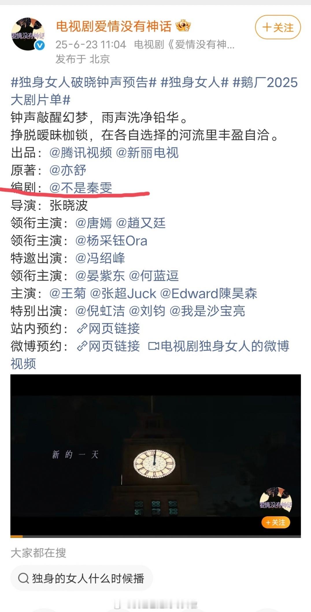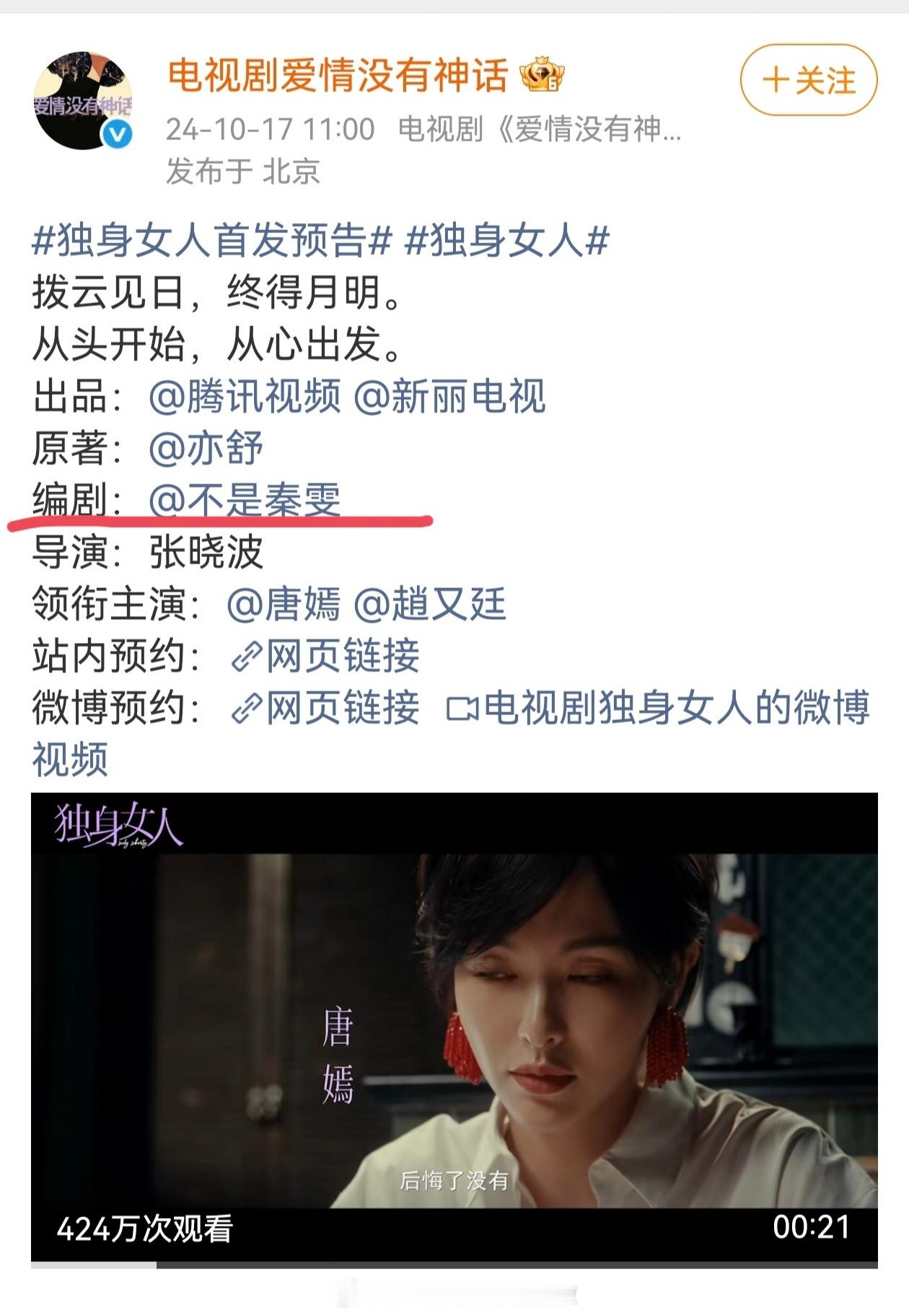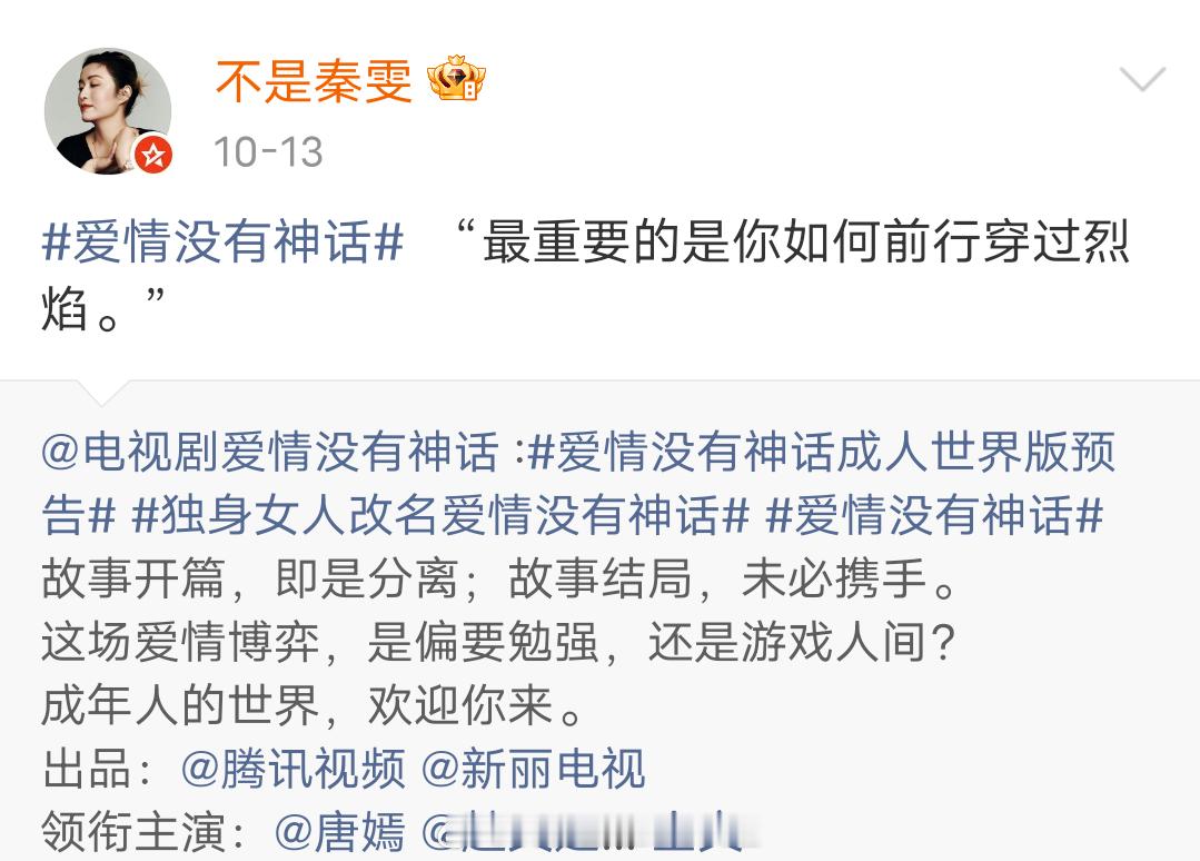 《爱情没有神话》官宣主创阵容,秦雯居然拿到了一番,压了导演张晓波和主演唐嫣赵又廷。