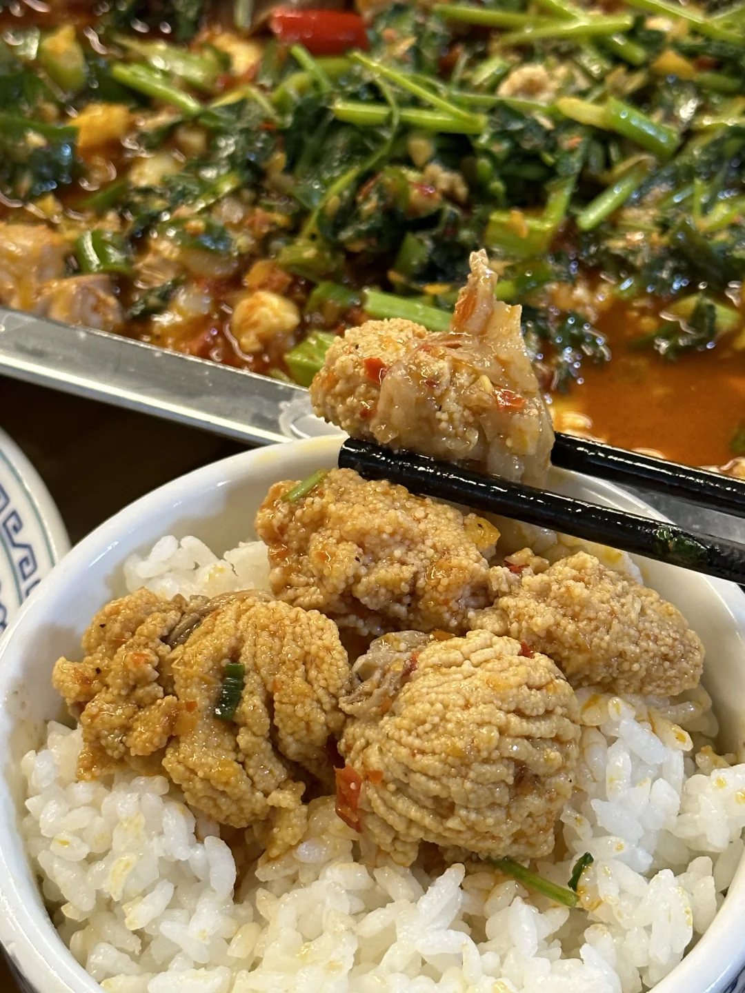 牛市口附近开了很多年的老店, 经常来吃宵夜,每次都会点这几道菜!! 烧鱼杂(藿香味型的,里面的鱼蛋和嫩豆腐好吃) 鲜椒牛蛙(连里面的丝瓜都吃的干干净净) 火爆脆肠(嘎嘣脆,泡椒味型的)