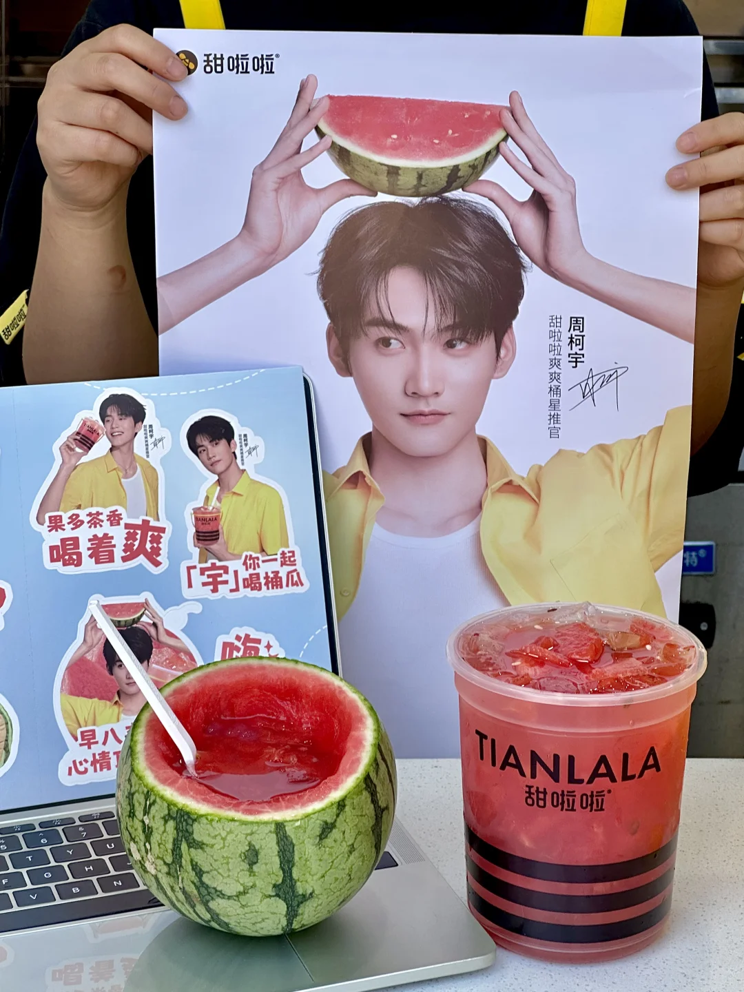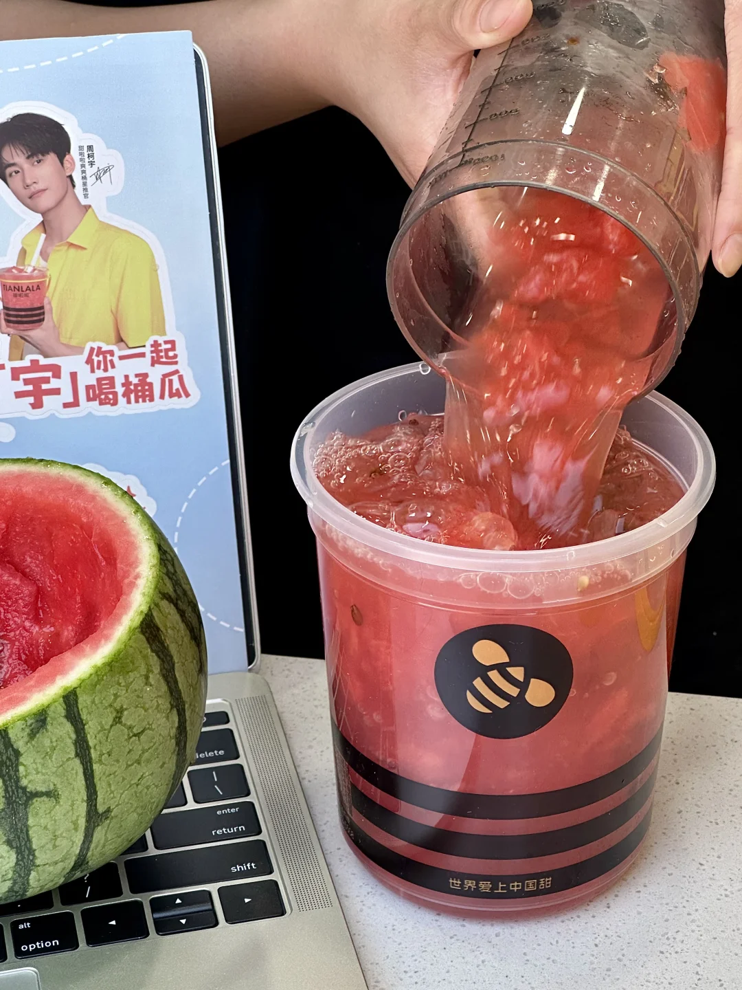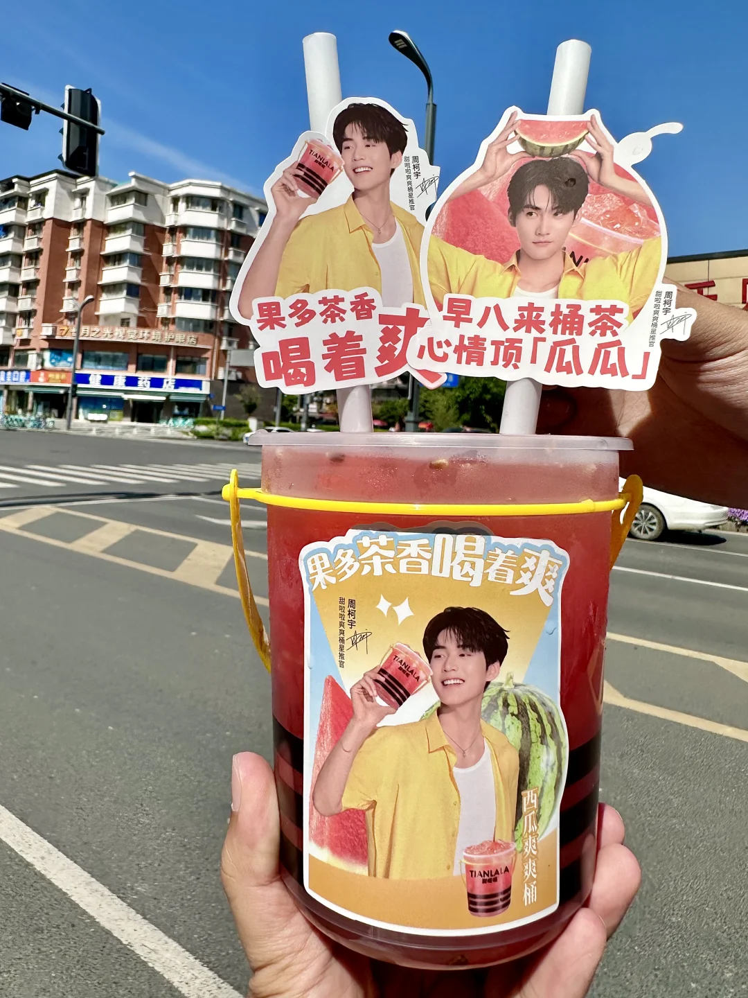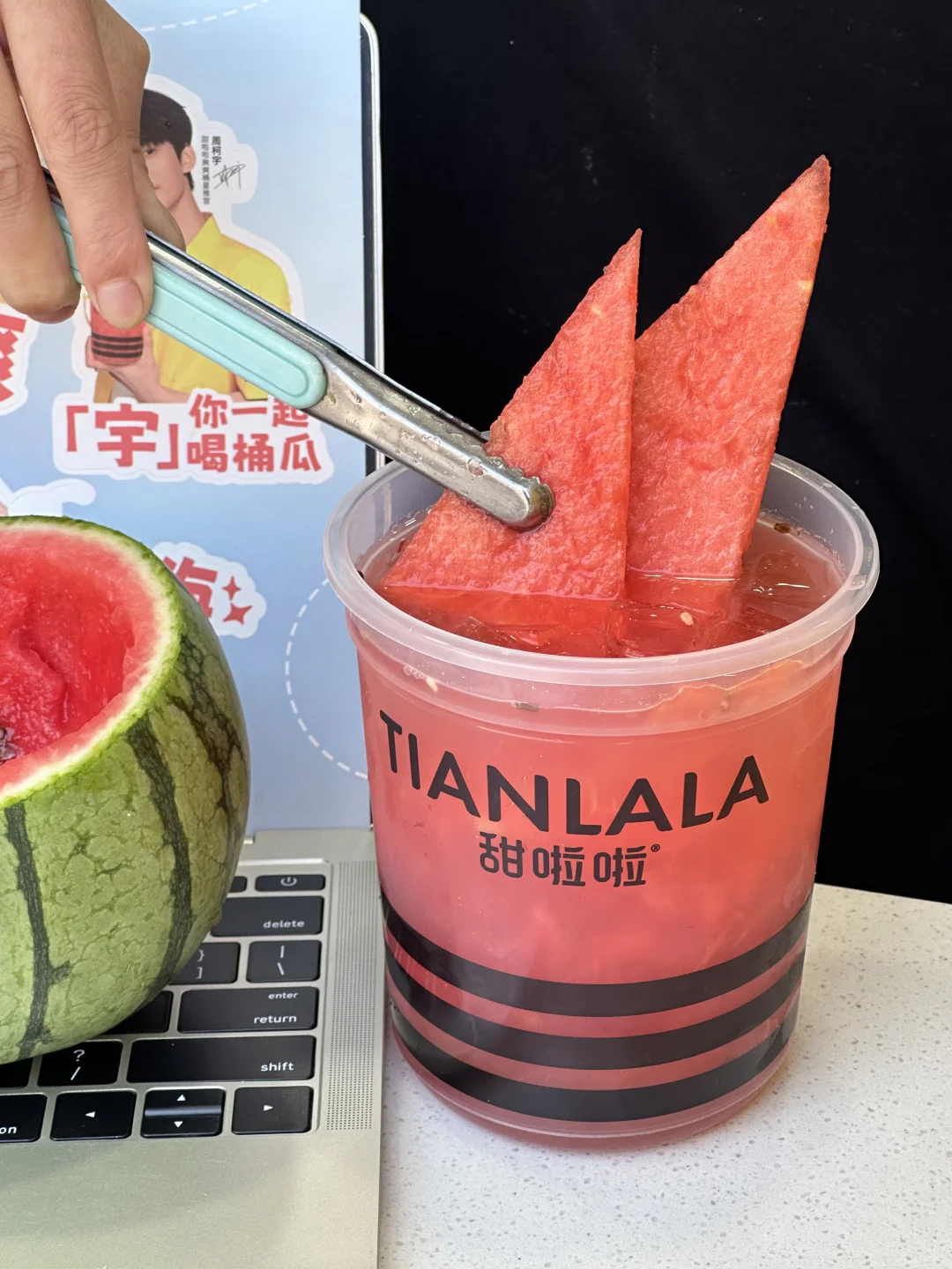 甜啦啦真的很懂事,喝到了周柯宇同款! 喝完一整桶心情都好了😂😂hhh! 1L的大桶装西瓜爽爽桶,比我直接啃西瓜还爽!! 小🍊才9.9r!!!这谁能拒绝!! 清甜汁水+脆甜的果肉+茉莉绿茶茶汤+水晶冻 这个夏天抱着这桶喝,清爽解腻,也很适合跟闺蜜一起分享!!!