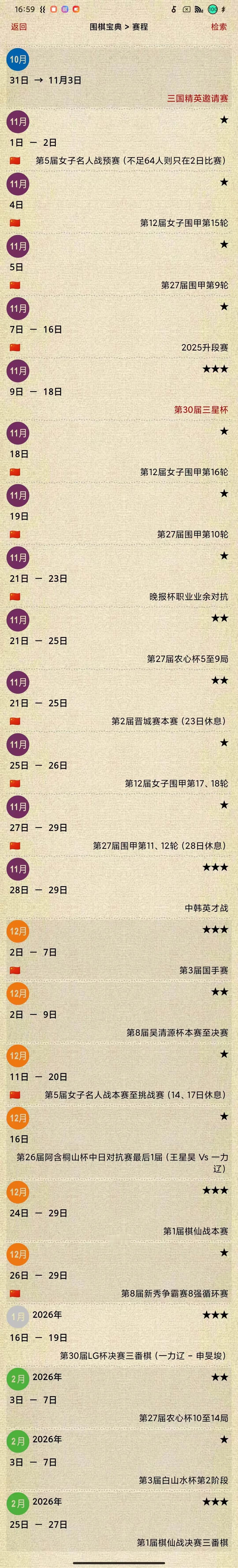 三星杯、农心杯、围甲、晋城赛等:2025年11月主要围棋赛事 围棋10月31日至