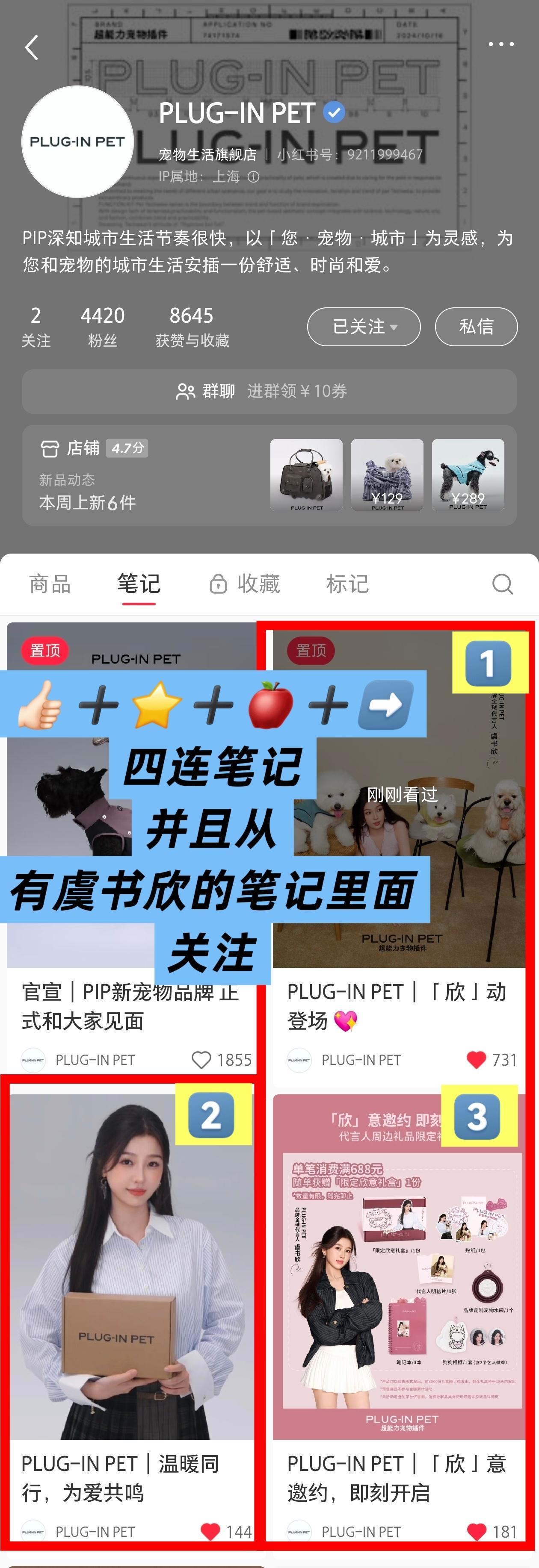 3️⃣给品牌方📕数据 从虞书欣笔记页面进入关注[手指比心]