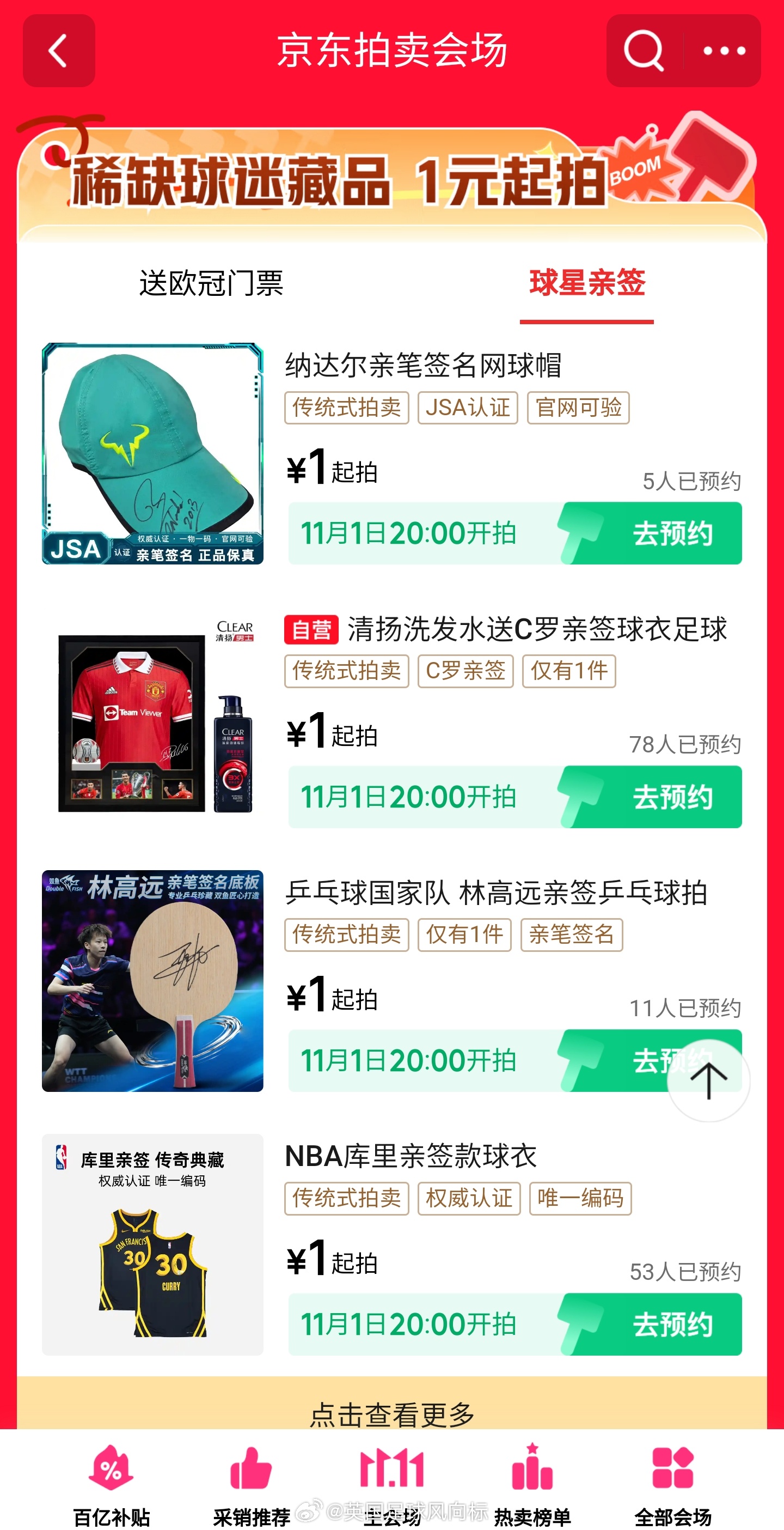 提醒一下球迷,拍品已全部上线预约,开拍时间11月1日20点,实现收藏梦想的一刻终于到了,各大豪门球迷总能找到心仪的球星亲签球衣。今晚8点,一起开抢!