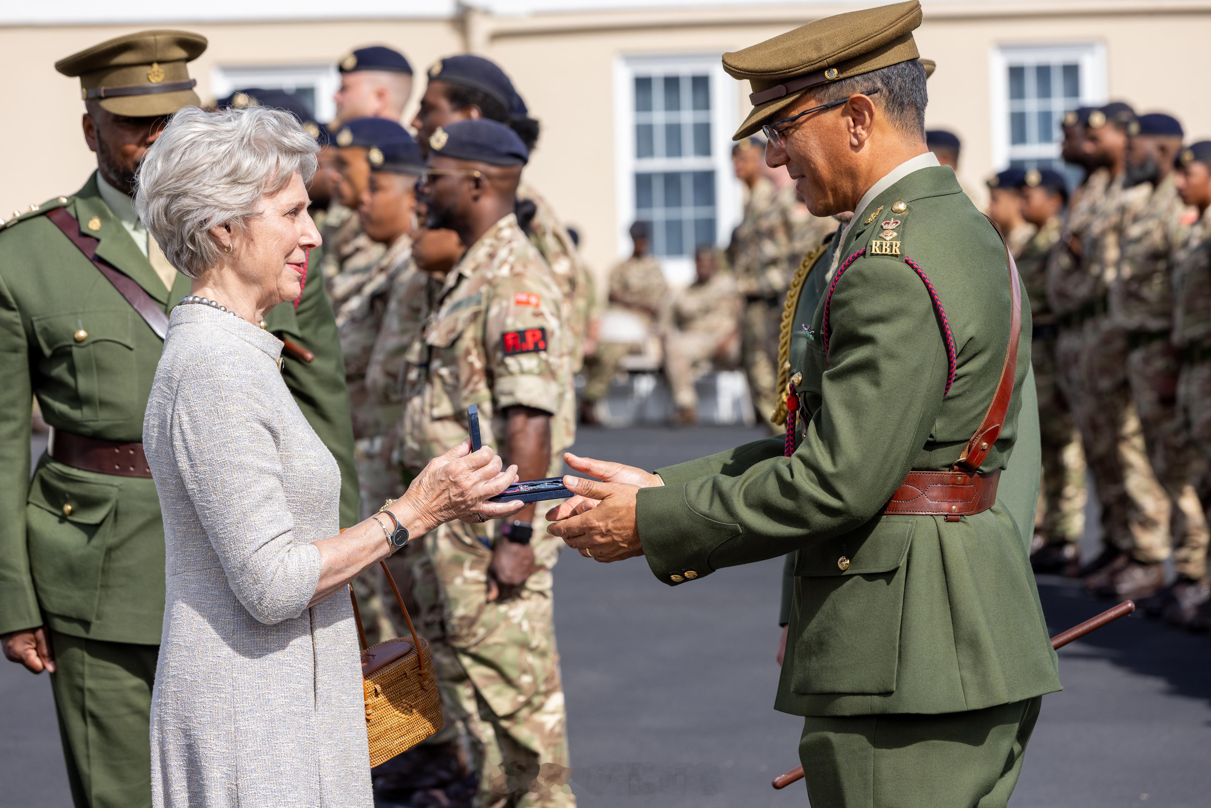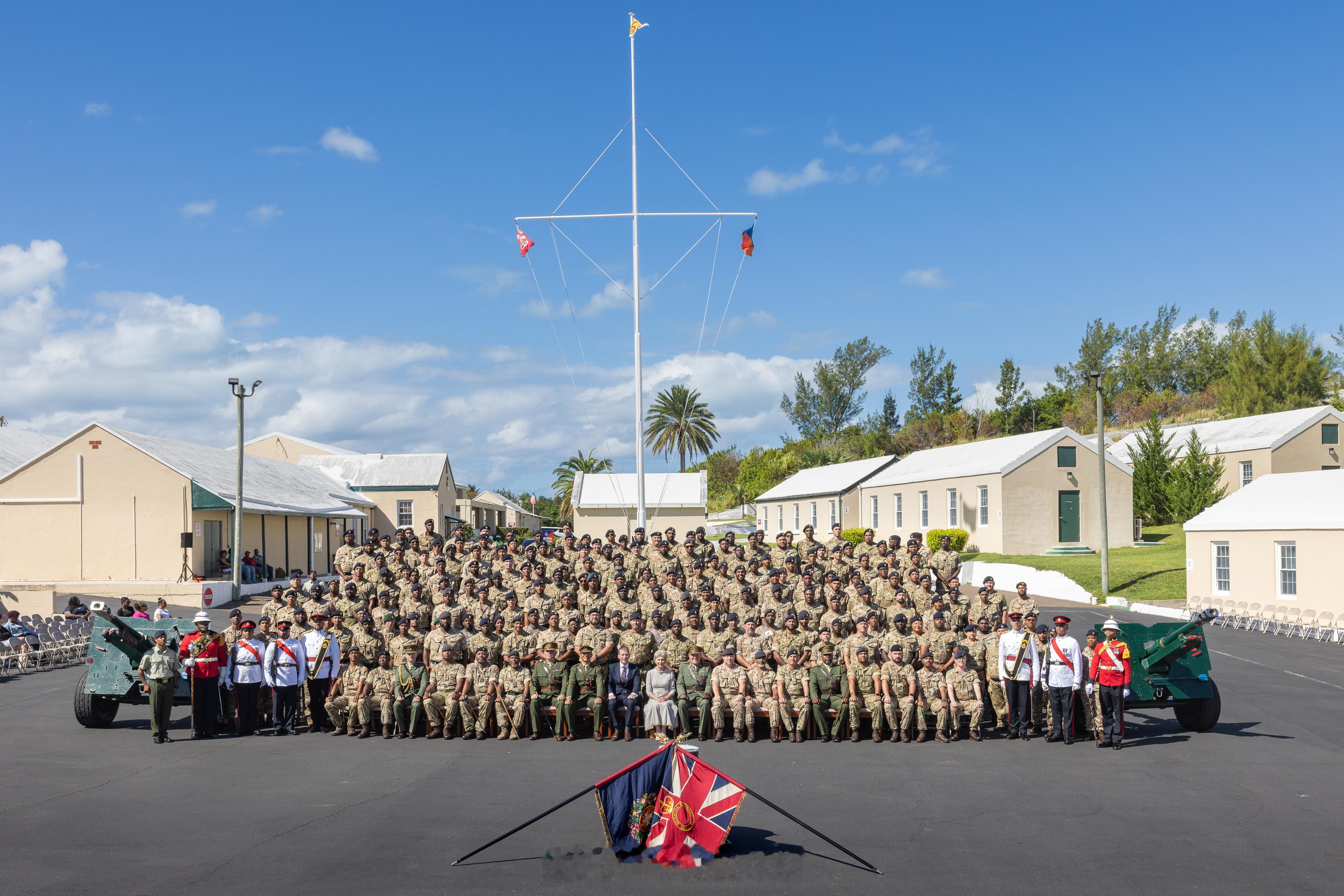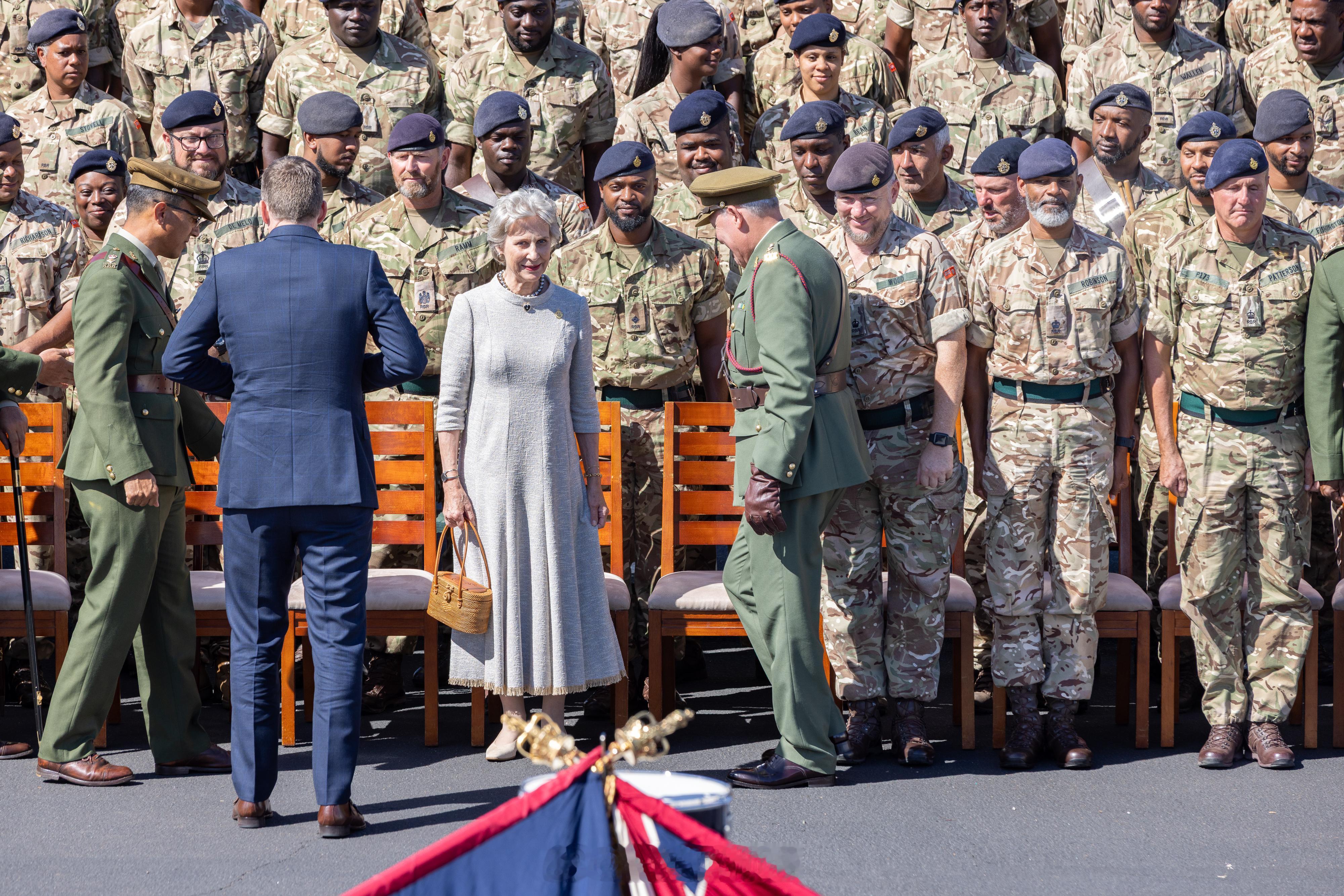 【补图】2025年10月19日,作为皇家百慕大团成立6️⃣0️⃣周年庆祝活动的一部分,格洛斯特公爵夫人比尔吉特在百慕大访问沃里克兵营,并与皇家百慕大团全体军官合影留念🇧🇲