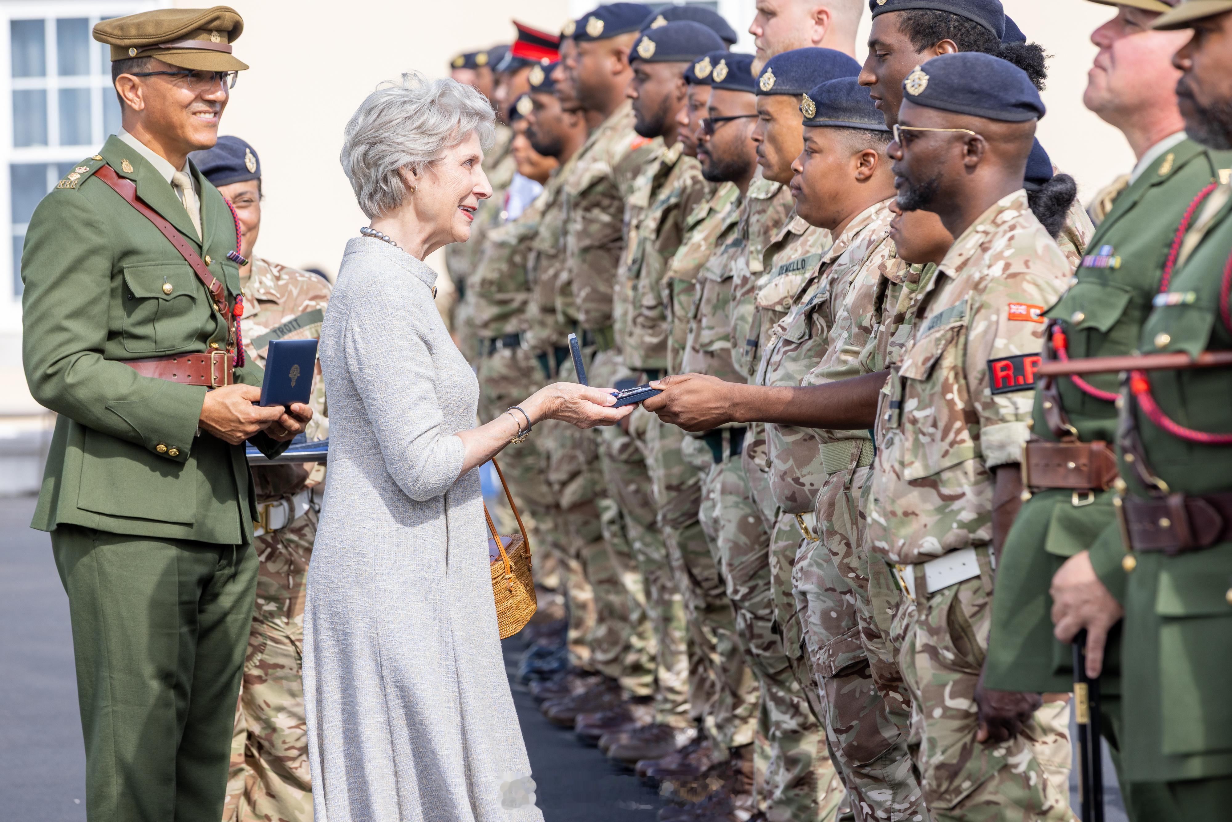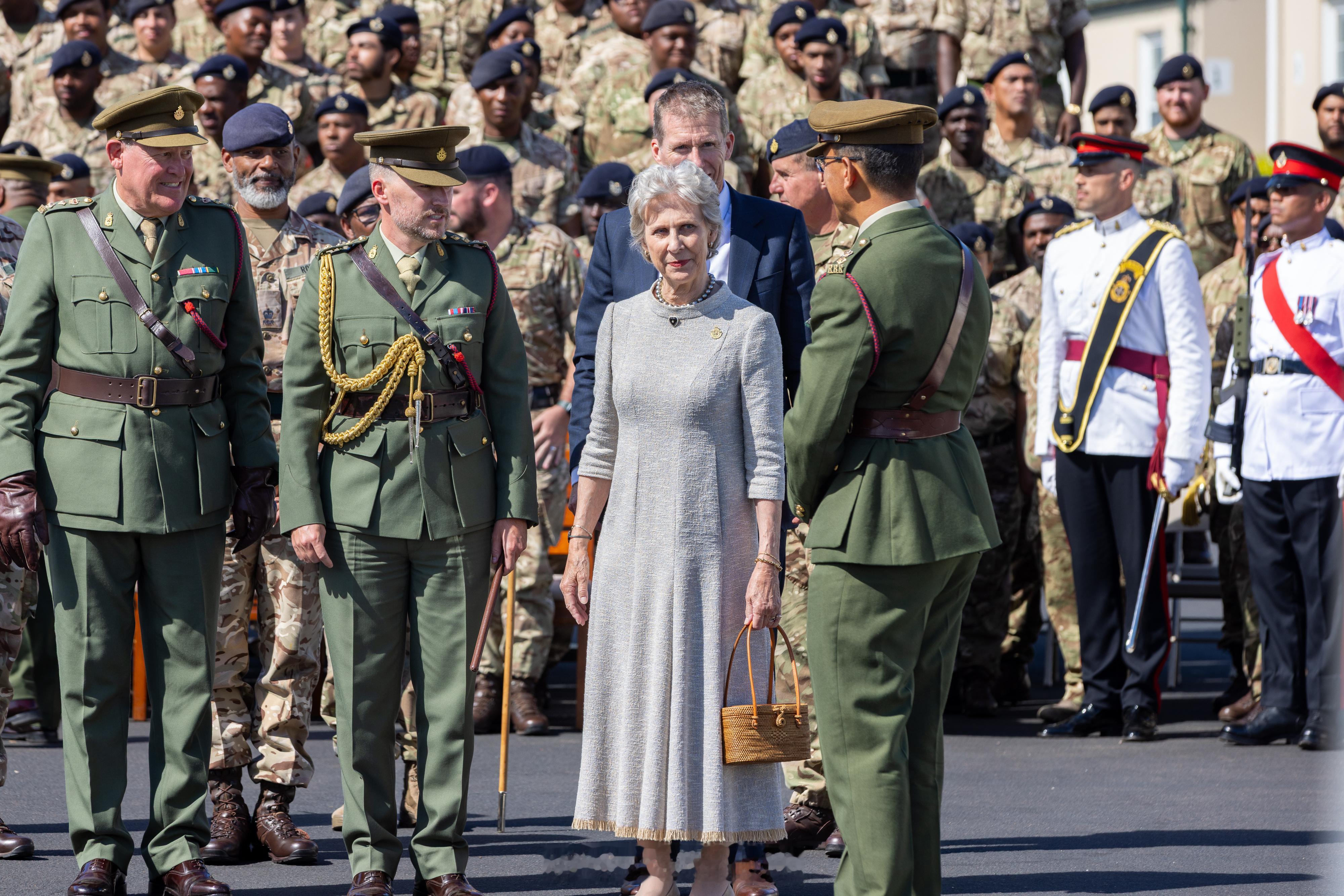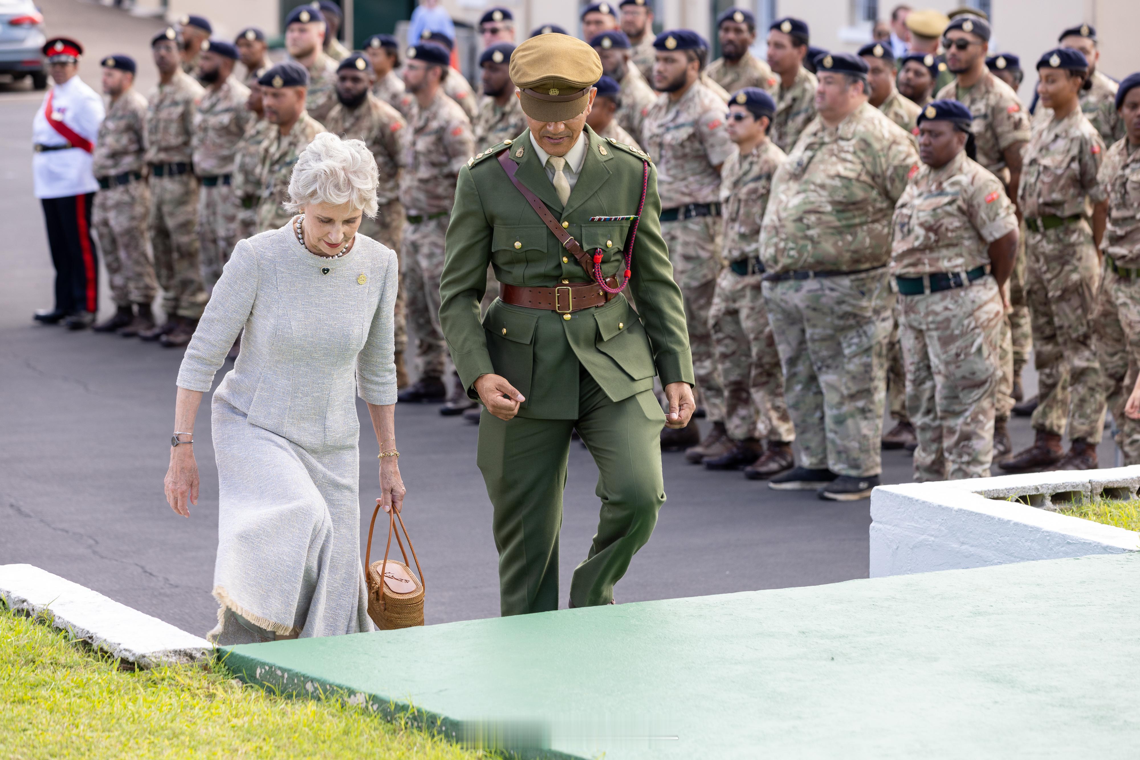 【补图】2025年10月19日,作为皇家百慕大团成立6️⃣0️⃣周年庆祝活动的一部分,格洛斯特公爵夫人比尔吉特在百慕大访问沃里克兵营,并与皇家百慕大团全体军官合影留念🇧🇲