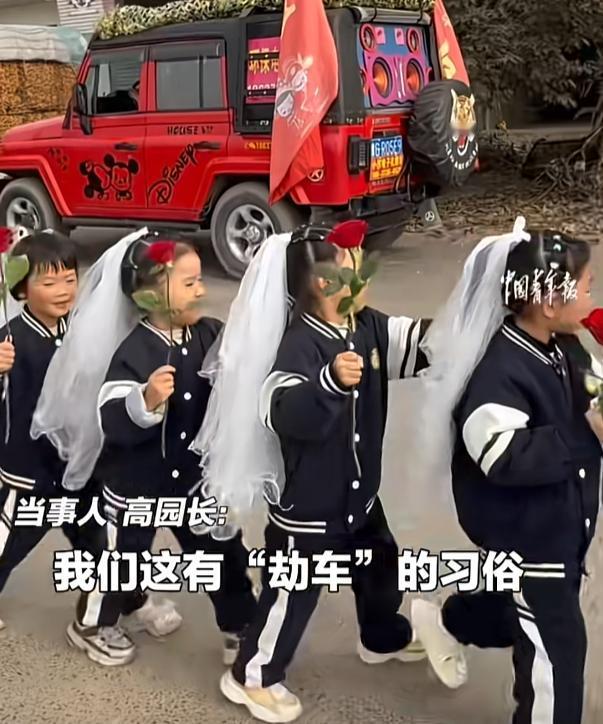 这婚礼火上青年报了,近日河南新乡,幼儿园老师出嫁,没想到迎亲队伍刚走到村口就被拦住了,而拦住婚车的正是幼儿园园长和所有的小朋友,小朋友后面的举动,也给老师感动哭了。网友:这样的祝福才是拦车的意义。 河南新乡这位幼儿园老师,平时对孩子们很有爱心,老师和同学也都很喜欢她,园长知道她要结婚时,就想着给老师一个不一样的婚礼,园长在把自己的想法给其他老师和学生说了之后,也得到了一致的肯定。 看着兴奋的孩子们,园长也非常开心,提前跟新郎说了一声,打算按照“劫车”的习俗,在迎亲的路上由孩子们拦车送祝福,新郎也非常开心,表示肯定不跟新娘说,给新娘一个惊喜。 到了婚礼当天,园长把孩子们都集合起来,给每个同学都带上了头纱,发了一朵玫瑰,开着校车就守在了路边,校车上还贴心的写上了孩子们的祝福语。 等婚车到了,园长就带着孩子们排成一排,送上了提前排练好的祝福语,并且让每个小朋友都依次把手中的鲜花给婚车中的老师,新娘看到这一幕,笑着接受孩子们的祝福,笑着笑着眼泪就止不住了。 有网友说:原来婚礼是不用被阻拦而是送福的。 也有网友送上了祝福:往日出门三五载 今日出门万万年 祝福你们地久天长 多生几个好儿郎。 这场婚礼,应该是从网上见过的最有纪念意义的婚礼了,不仅有婚礼的幸福,更有工作的意义,平时对孩子的爱,在这一刻开花结果了。 可以说这位老师就是最幸福的新娘,不仅有娘家的帮助,婆家的疼爱,更有幼儿园的园长和小朋友这些没有血缘的亲人,绝对是最成功最幸福的新娘。 素材来源:中国青年报