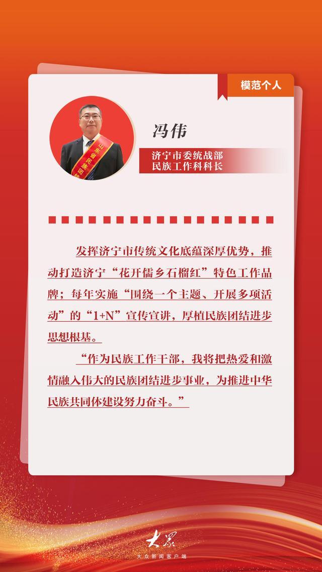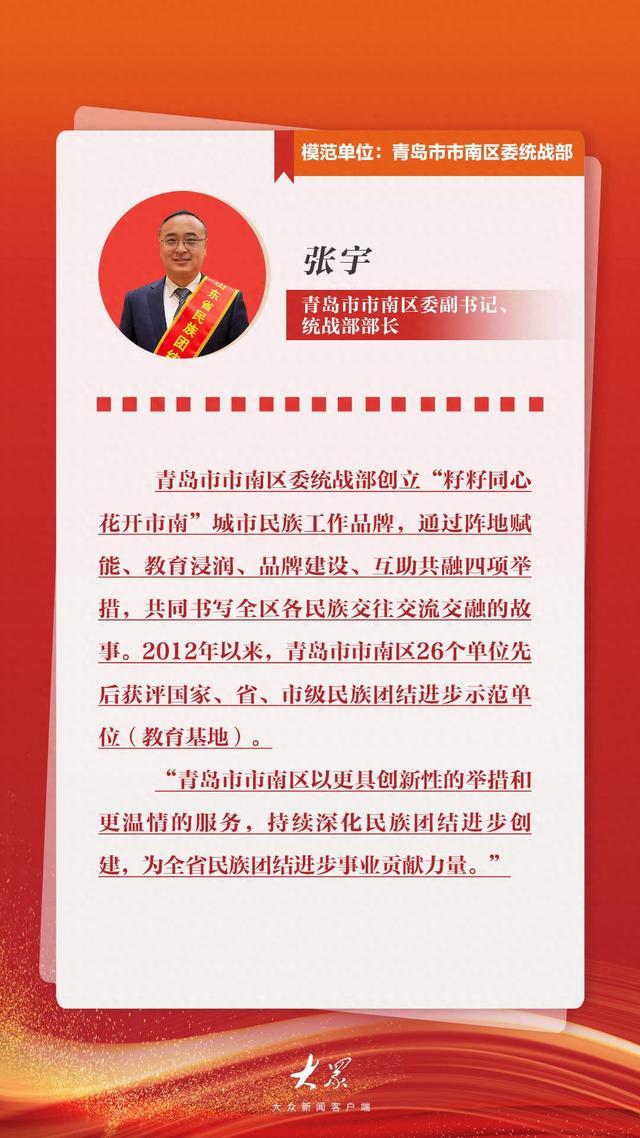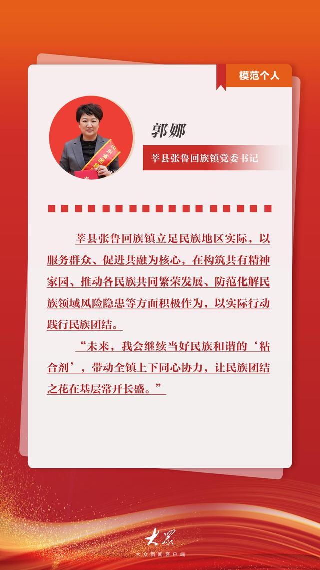 10月31日,一批为齐鲁大地民族团结事业作出突出贡献的山东省民族团结进步模范集体和模范个人受到表彰,他们以实际行动谱写了“中华民族一家亲,同心共筑中国梦”的生动篇章。让我们一起了解2个模范集体和4位模范个人用真诚与行动书写的团结故事,汲取榜样的力量。