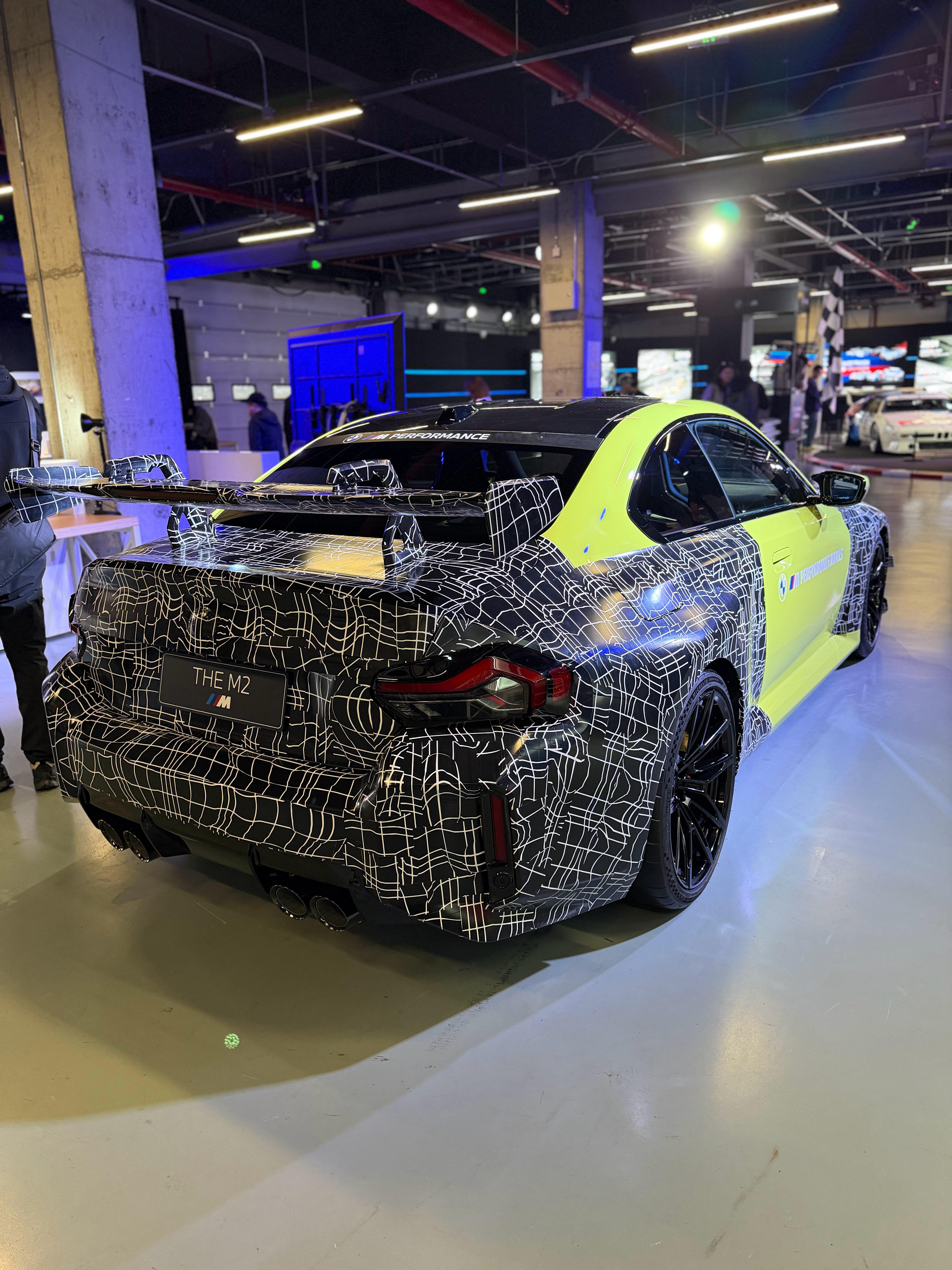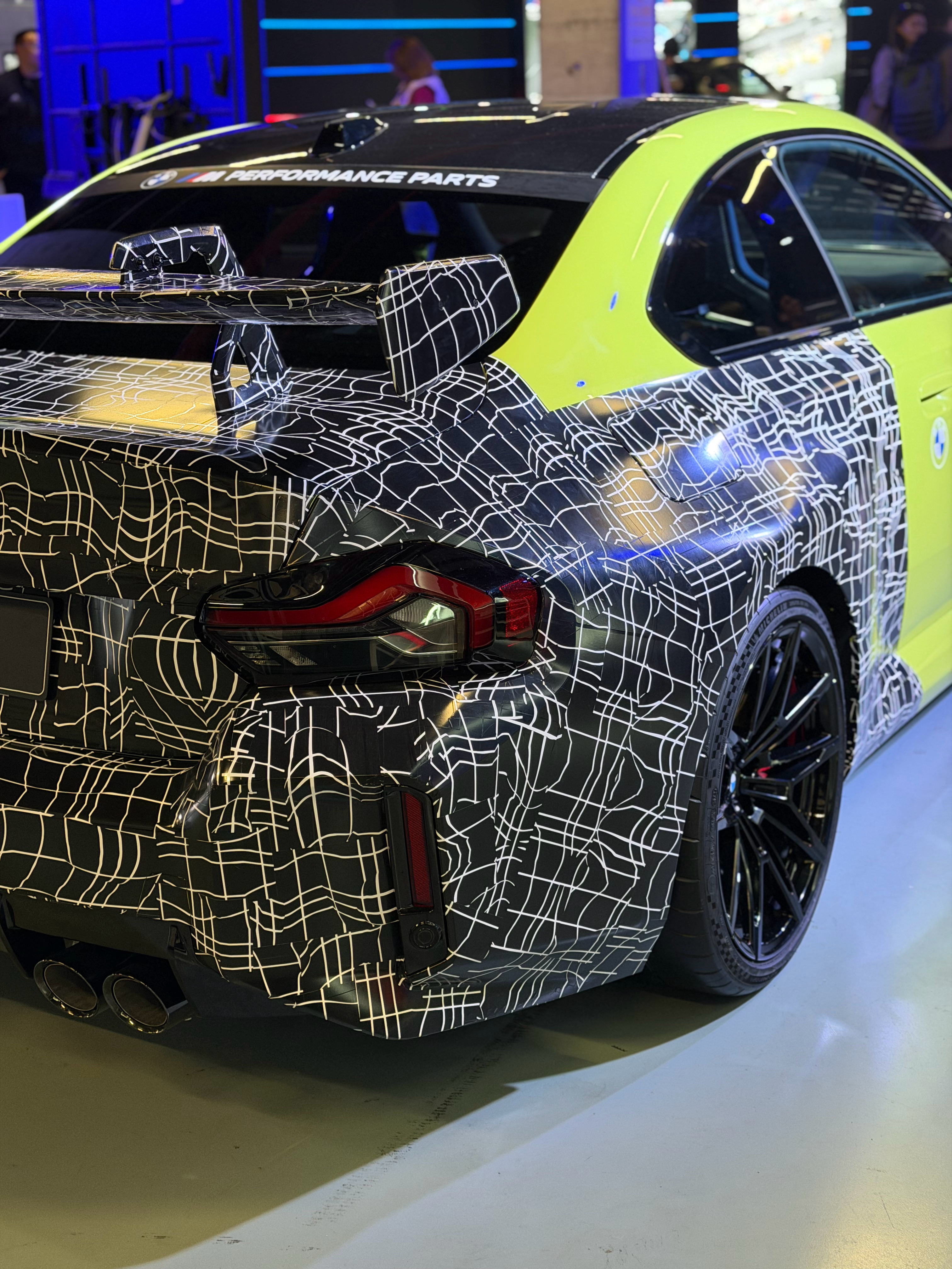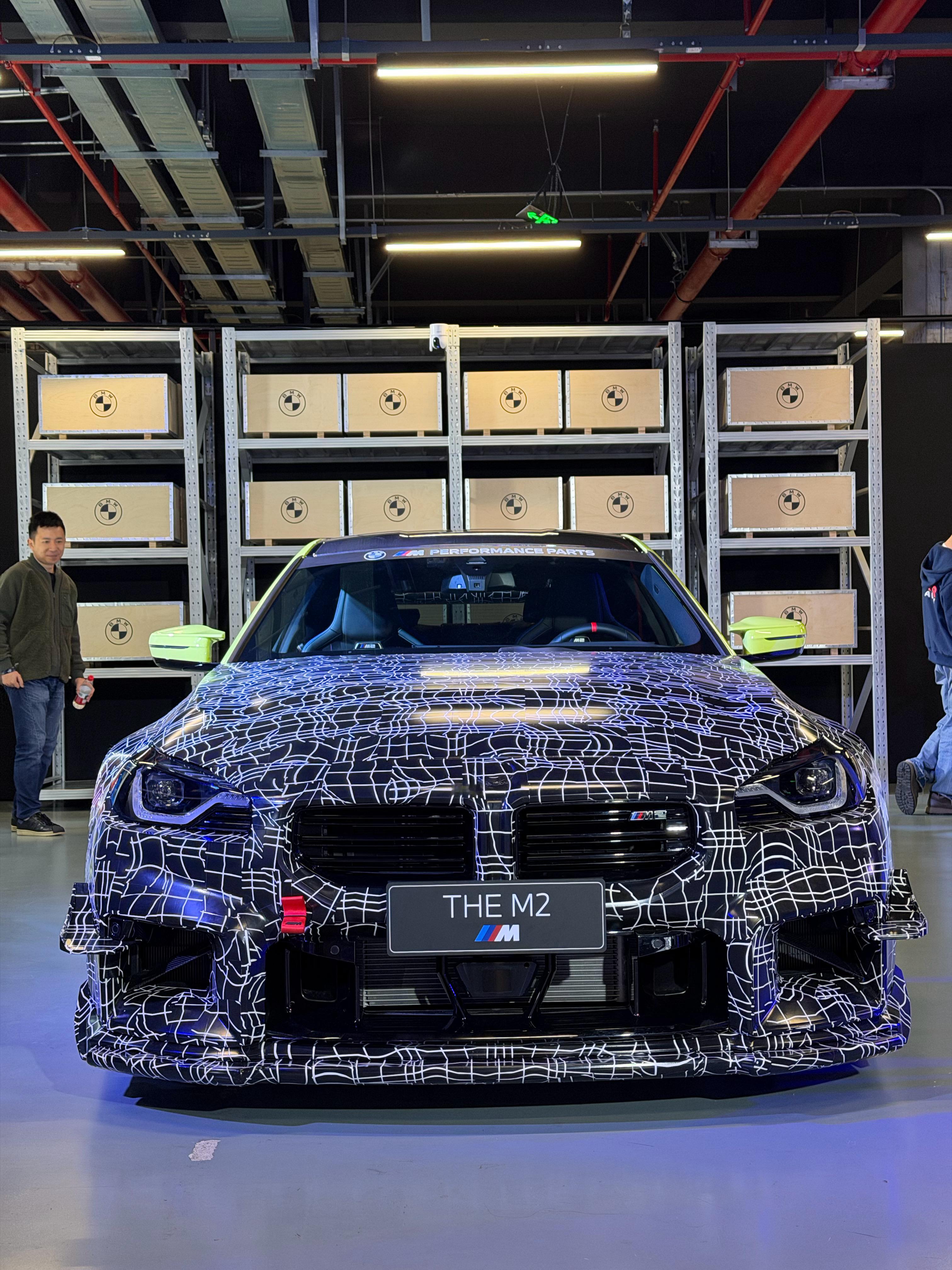 宝马M2的新款M Performance套件,夸张的风刀、鹅颈尾翼等。这伪装贴的刚刚好,神秘感加了不少 [666] 汽场全开