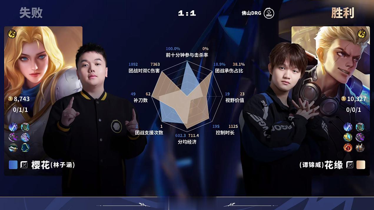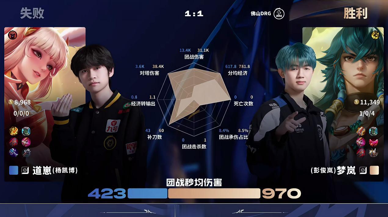 DRG/狼队第2局数据对比:梦岚苍完全包围道崽公孙离