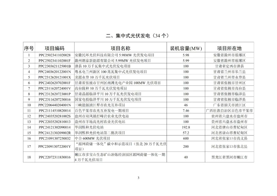 2025年9月,全国新增建档立卡新能源发电(不含户用光伏)项目共7218个,其中风电项目32个,光伏发电项目7184个(集中式光伏发电项目34个,工商业分布式光伏发电项目7150个),生物质发电项目2个。风电、集中式光伏发电、生物质发电项目清单见附件,工商业分布式光伏发电项目清单详见国家可再生能源发电项目信息管理平台网站(网址https://jdlk.renewable.org.cn/card-info-sheet/)。