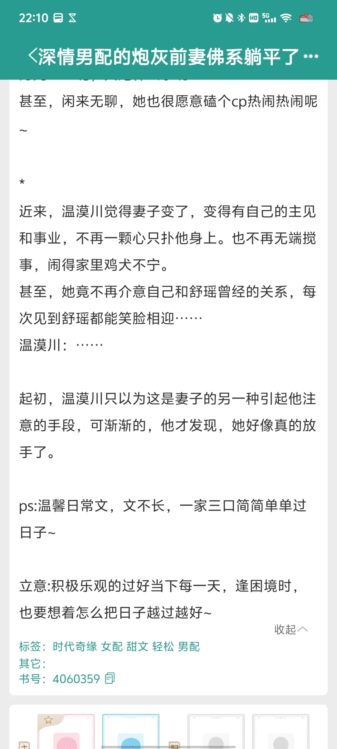 《深情男配的炮灰前妻佛系躺平了》by荷风送 刚完结的文,一共103章 咸鱼贵妇vs高冷霸总 穿书,躺平日常,温馨向