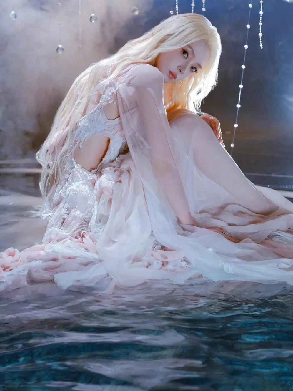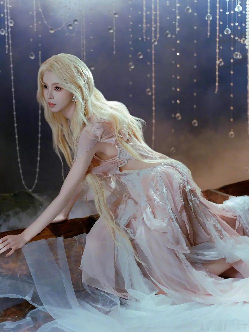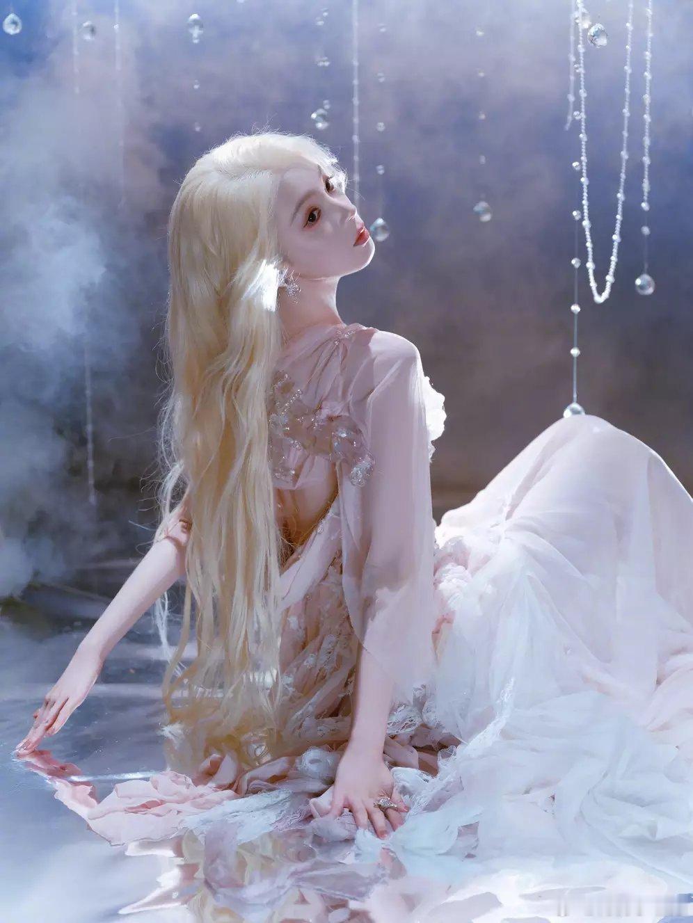 分享娱乐[超话]分享娱乐 陈瑶粉白纱裙搭配金色长卷发 宛如人鱼公主气质空灵