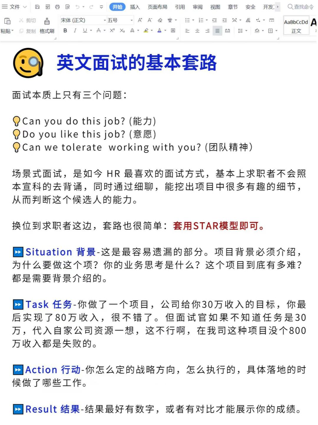 和中文面试一样,英文面试也有自己考察的侧重点,只要你用star法则组织语言,就可以轻松应对。