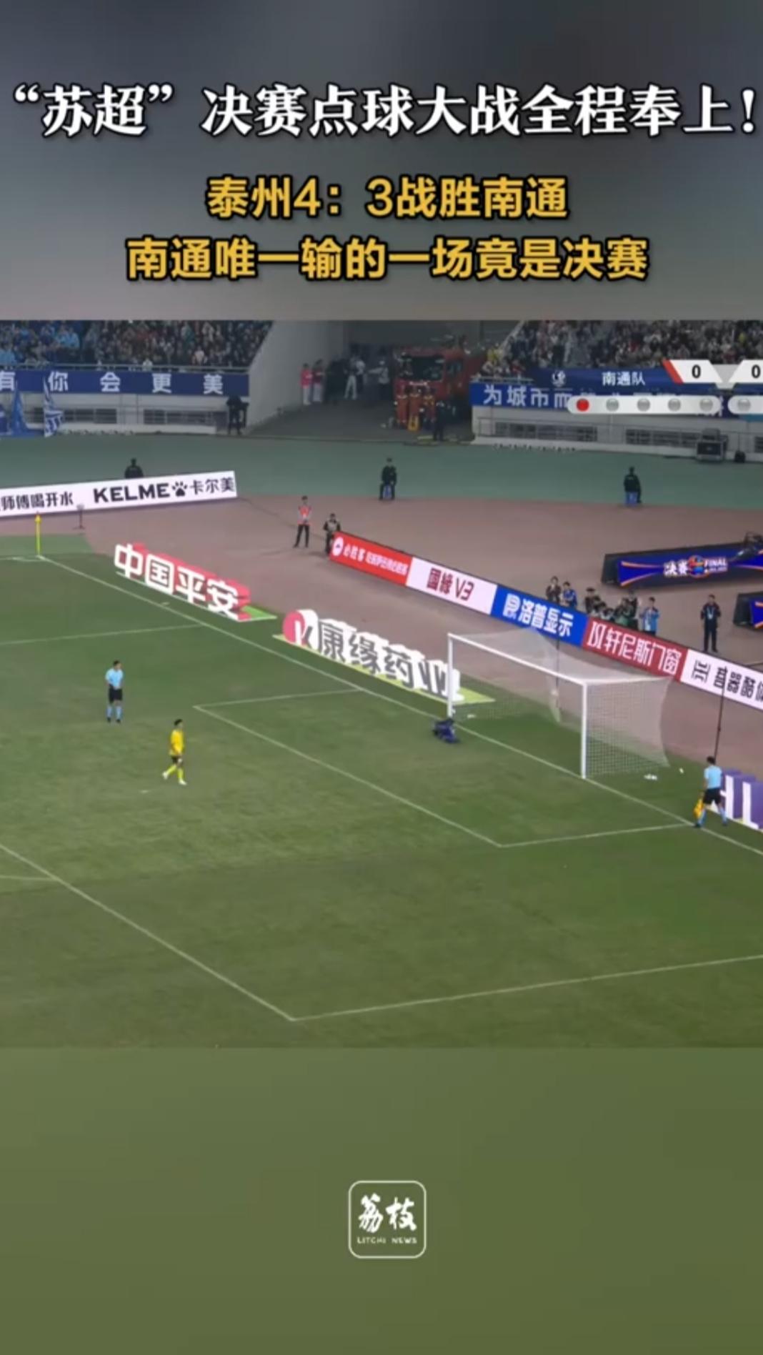 南哥没有夺冠有点遗憾 苏超冠军战昨晚打响,南京奧体有六万三千多观众观看本场比赛。南哥输了唯一的一场球,同时也丢了冠军,有点遗憾。最终泰州队4:3点球战胜南通队,恭喜泰州队获得苏超冠军🏆。 本场比赛90分钟内双方0:0战平,进入点球大战南通首罚点球,结果第一粒点球射飞,最后一粒被守门员扑出,这样泰州队4:3获得苏超冠军。