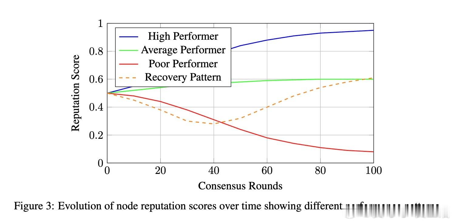 4. 声誉加权共识:节点声誉根据排名和生成质量动态调整,优胜劣汰,驱动系统整体能力演进。