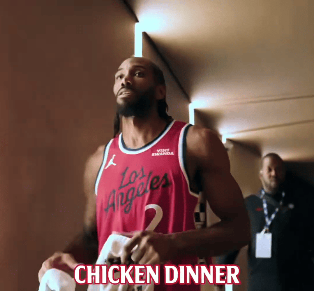 快船官方晒出伦纳德昨日赛后绝杀后发言:“WinnerWinner,ChickenDinner”(大吉大利,今晚吃鸡)。