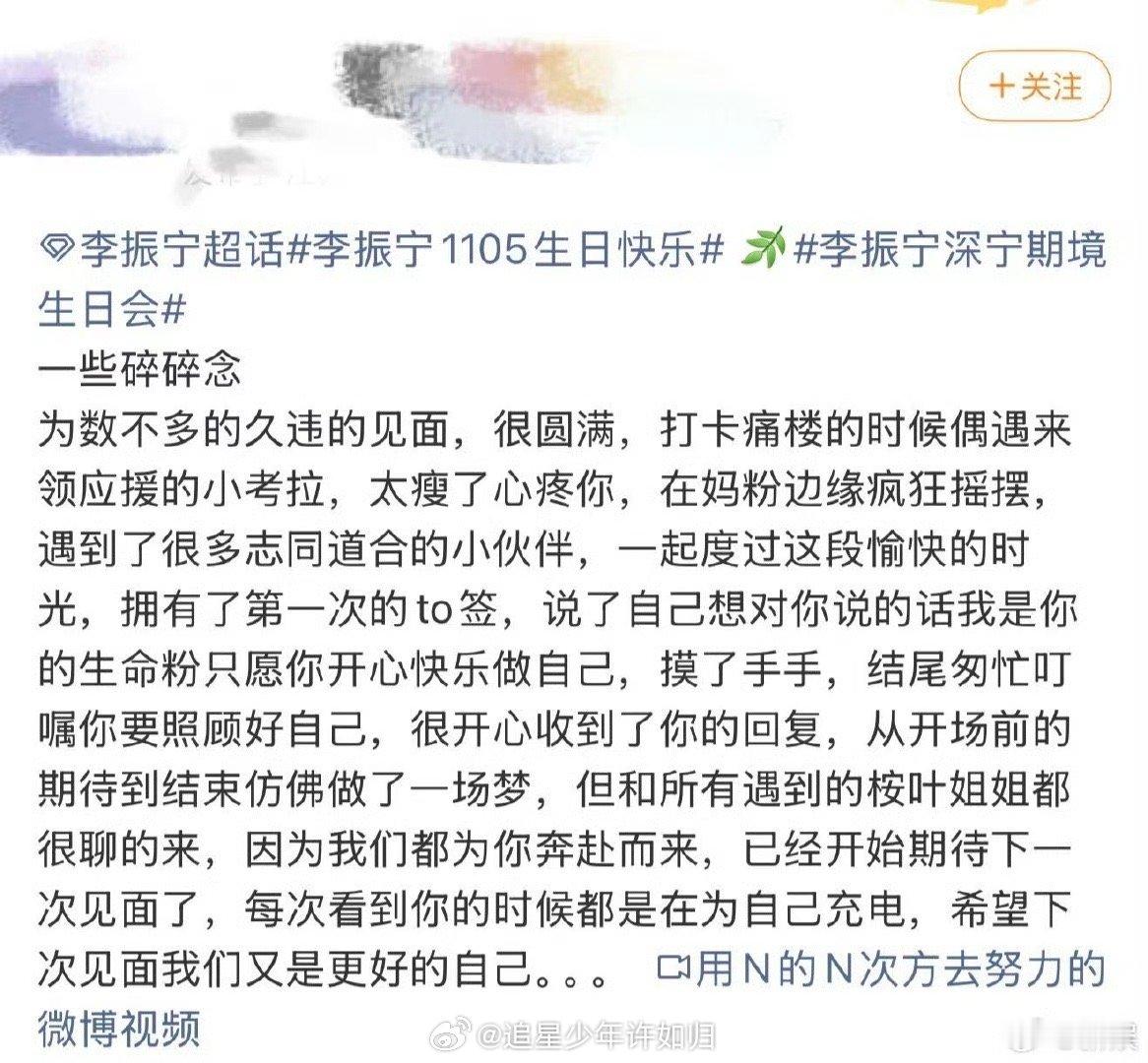 李振宁这次换我走向你们 生日会不是终点,而是新起点。李振宁与粉丝约定:继续彼此照亮,奔赴更远的未来。