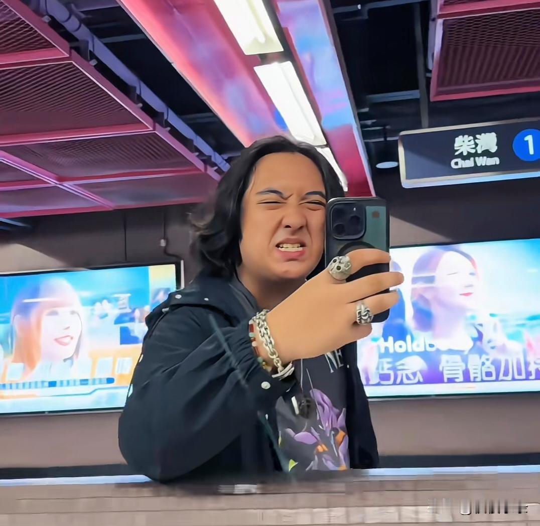 吴镇宇17岁儿子费曼和朋友在香港坐地铁出行,他的穿衣打扮一言难尽,给人一种邋里邋