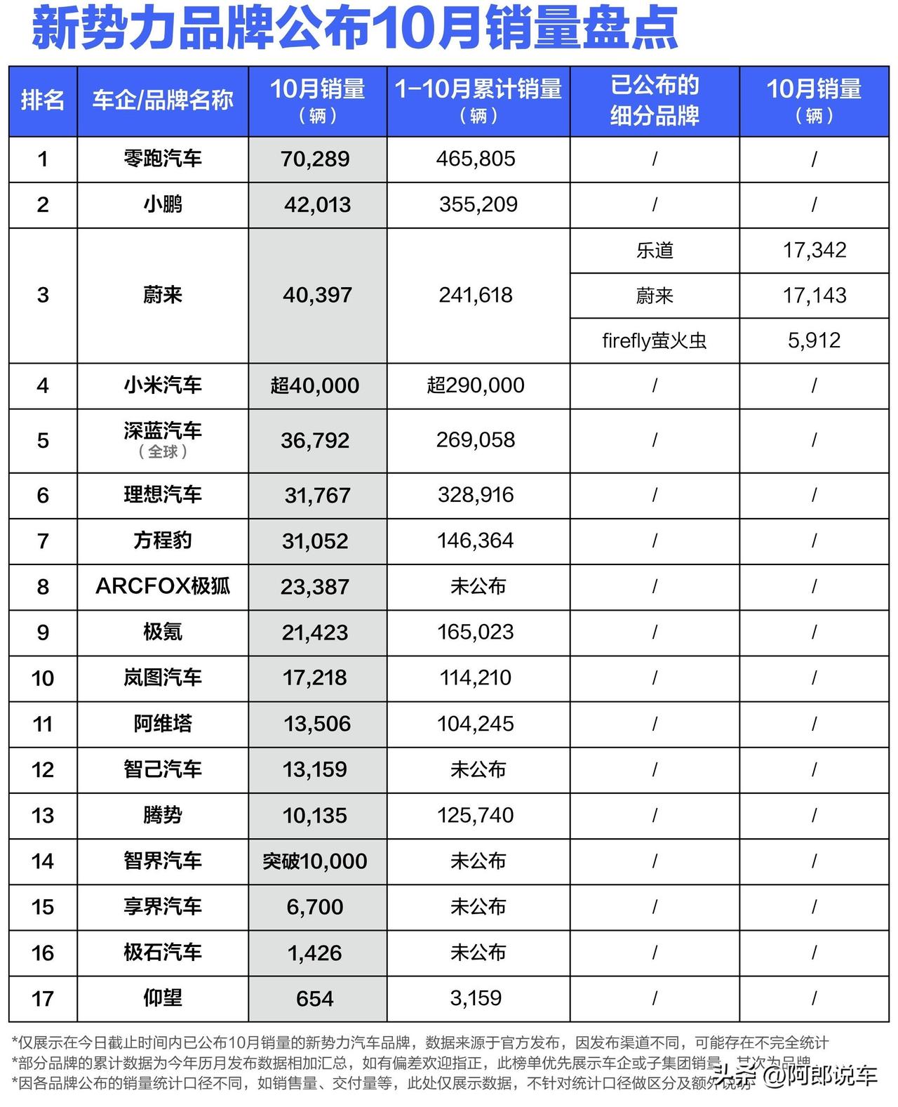 2025新能源车销量炸了!比亚迪王炸370万,新势力大洗牌,小米智界突飞猛进。 1-10月销量一出炉,市场格局彻底变了! • 比亚迪以370万辆稳居第一,单月狂卖44万,王朝/海洋、方程豹、腾势多线开花,碾压级表现。 • 新势力大洗牌:零跑、极氪、小鹏稳居前三,蔚来多品牌策略初显成效,乐道、萤火虫贡献显著。 • 小米、智界强势入场,单月突破4万辆和1万辆,跨界玩家来势汹汹。 多品牌策略成主流,比亚迪、蔚来、上汽通用五菱等纷纷布局细分市场,覆盖不同价格带与用户群体。小米、智界等新玩家的加入,不仅带来新的技术与营销思路,也加速了市场竞争与产品迭代。 头部稳固、新势力分化、新玩家崛起,2025年新能源车市场将更加精彩! 你觉得谁会成为下一个黑马?评论区聊聊你的看法!