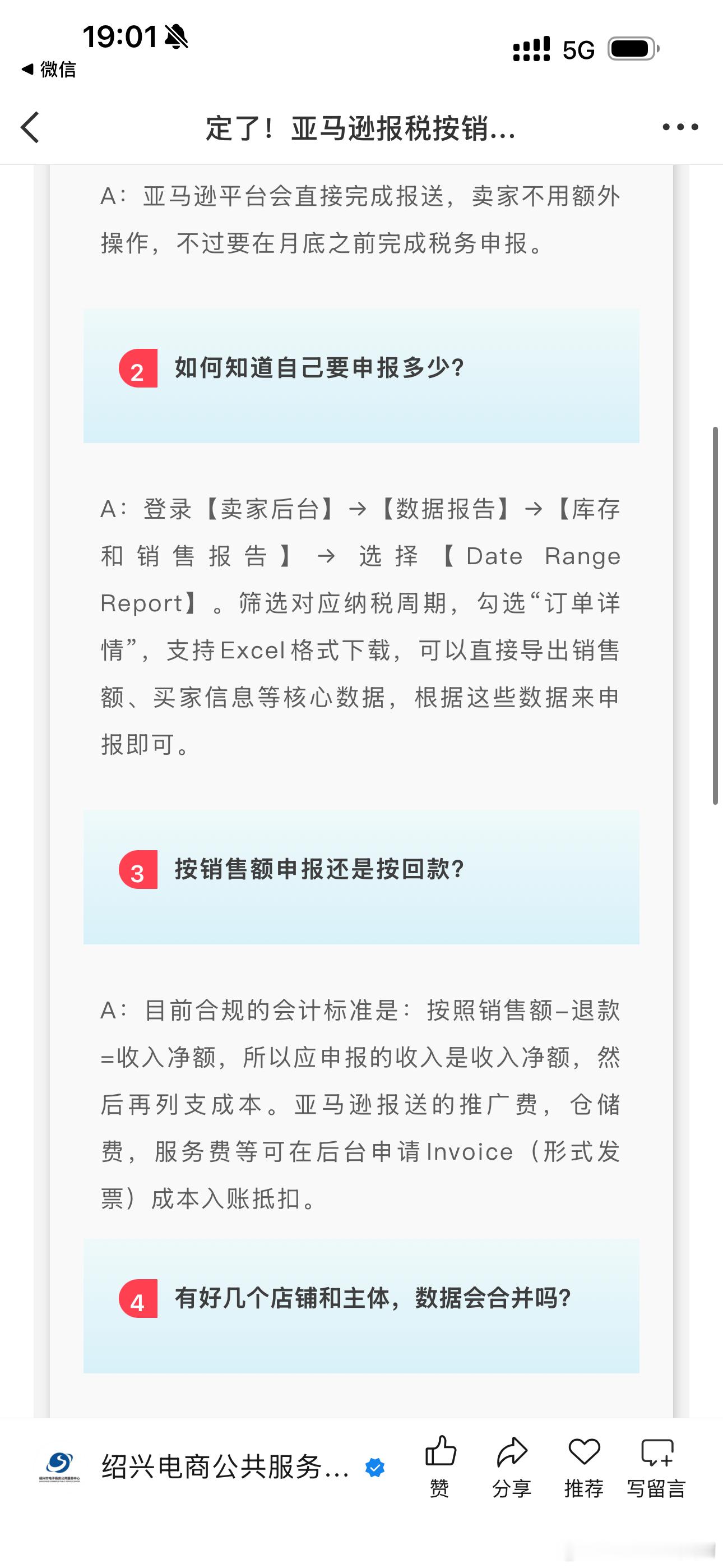 定了!亚马逊报税按销售额报送绍兴电商公共服务中心2025年10月29日10:54