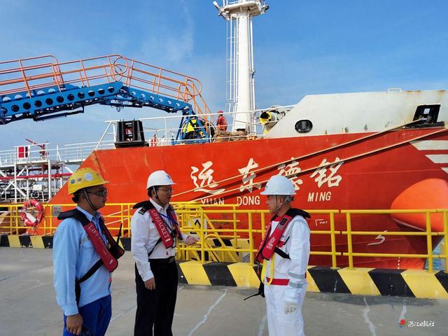 11月1日上午,在湛江海事部门的服务保障下,装载丙烯酸丁酯的“远东德铭”轮安全驶离巴斯夫湛江一体化基地液散码头。作为该基地开港后的首艘出口外贸船舶,标志着该基地外贸出口业务正式迈入新阶段。
