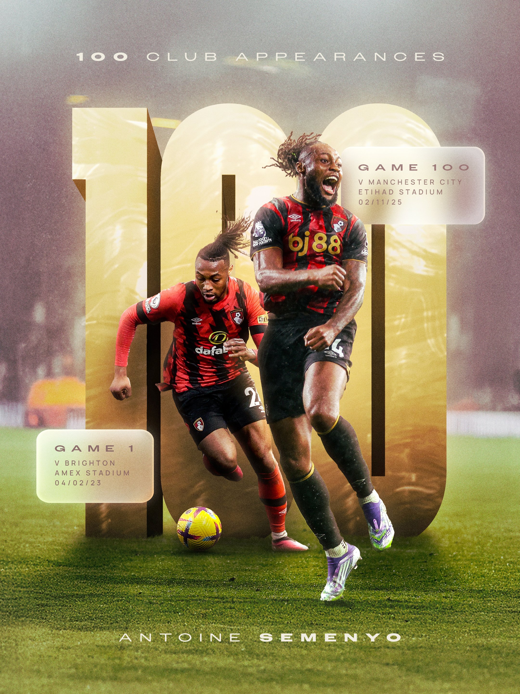 本场比赛也是塞梅约伯恩茅斯生涯的第100场里程碑,俱乐部官方发布海报祝贺。