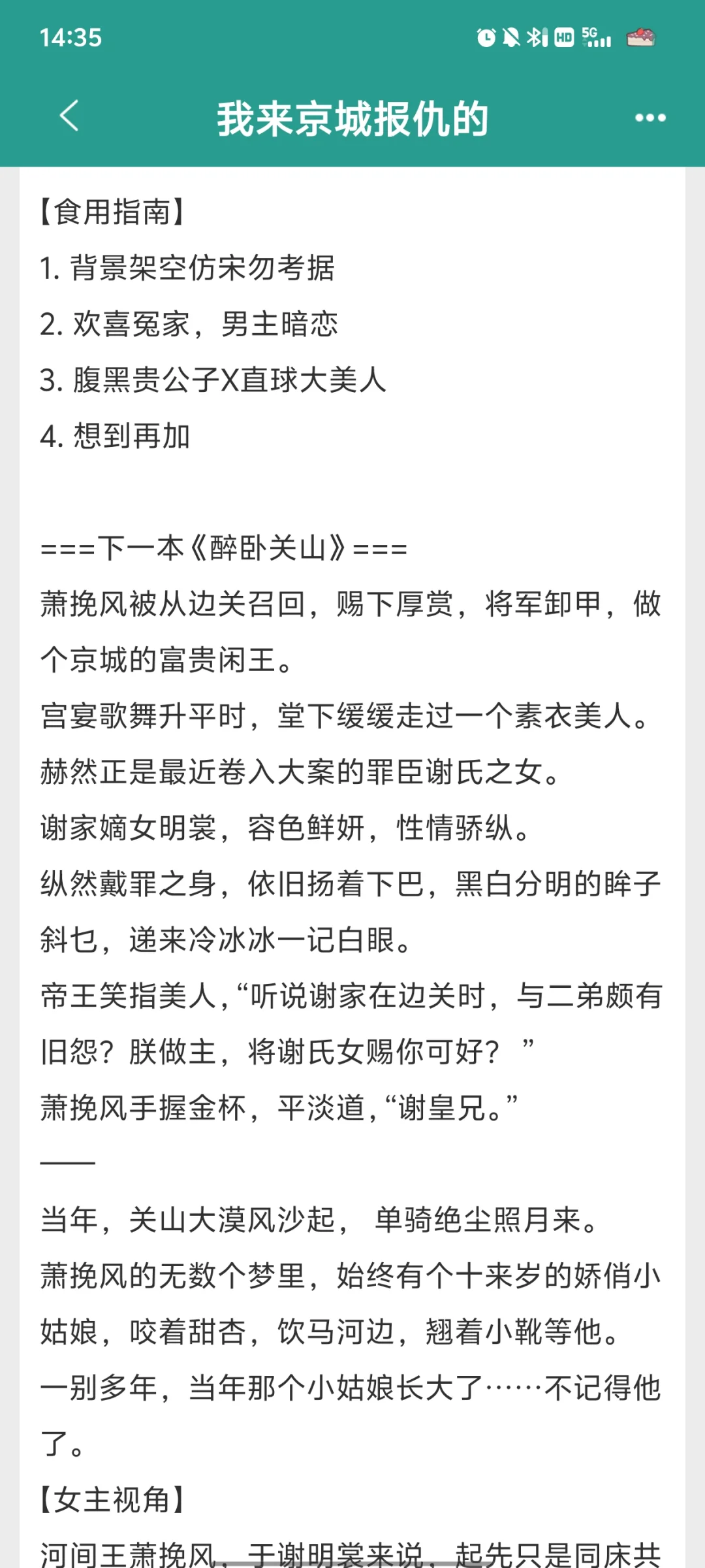 《我来京城报仇的》by香草许愿 刚完结的文,一共84章 腹黑公子vs直球美人 欢喜冤家,男主暗恋