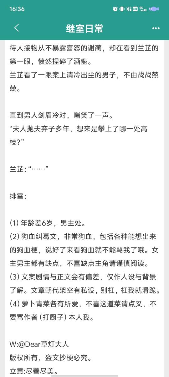 《继室日常》by草灯大人 刚完结的文,一共78章 女主叫兰芷,哈哈哈 高岭之花发疯,慢热养崽文