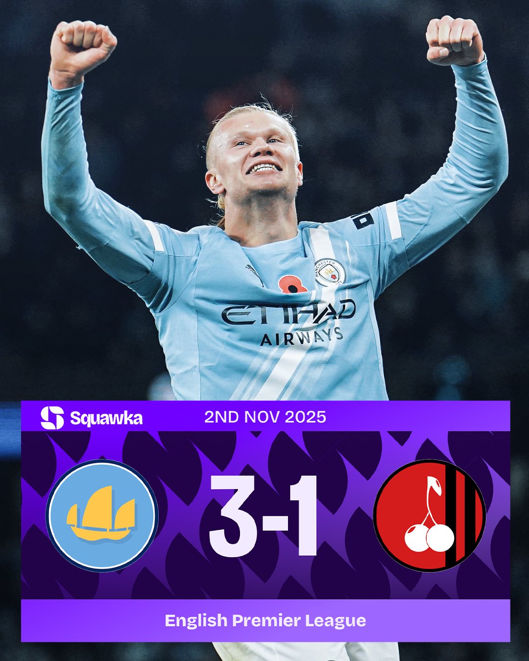 虎扑11月02日讯英超第10轮,曼城3-1伯恩茅斯。
